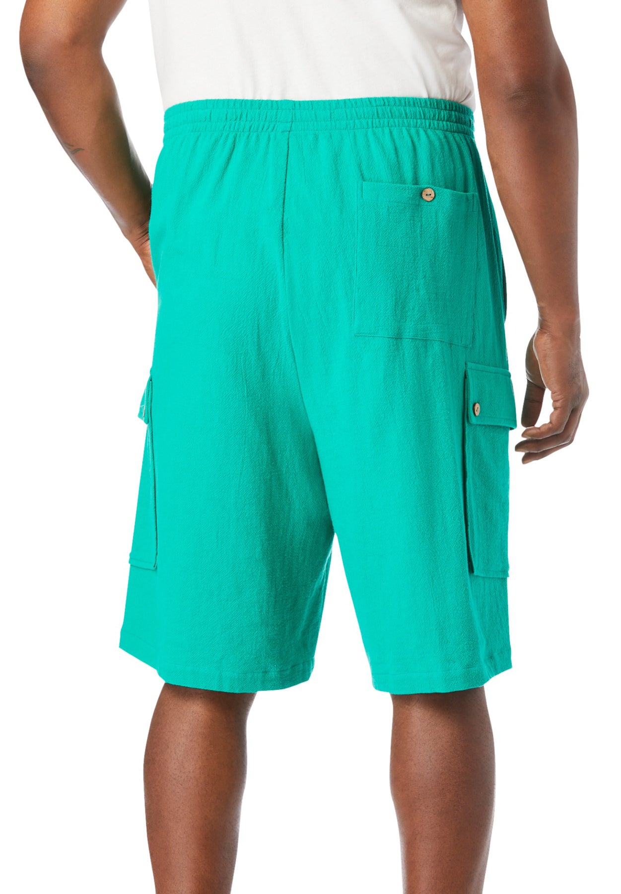 Looking for the perfect shorts for the summer season? Well, look no further than our Full Elastic Waist Gauze Cargo shorts. The 100% cotton gauze fabric makes them lightweight and breathable, keeping you cool all day long. And the side seam pockets, spacious cargo pockets, and single back pocket will allow you to enjoy summer activities hands-free!