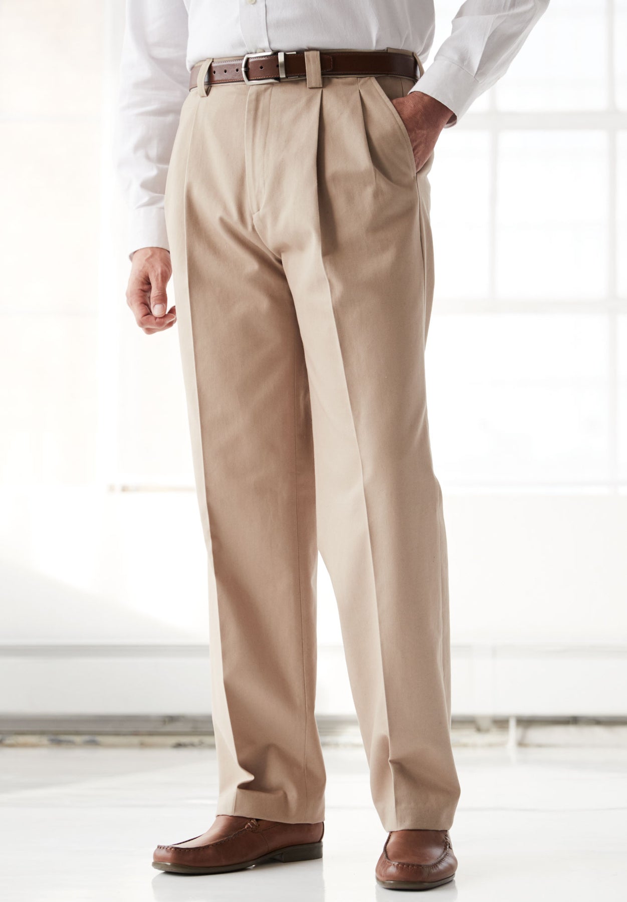 Our Classic Fit Wrinkle-Free Expandable Waist Pleat Front Pants are generously roomy through seat and thigh and sit naturally at the waist. These straight-leg pants are made in a wrinkle-free fabric that's sure to have you looking and feeling your best all day long.