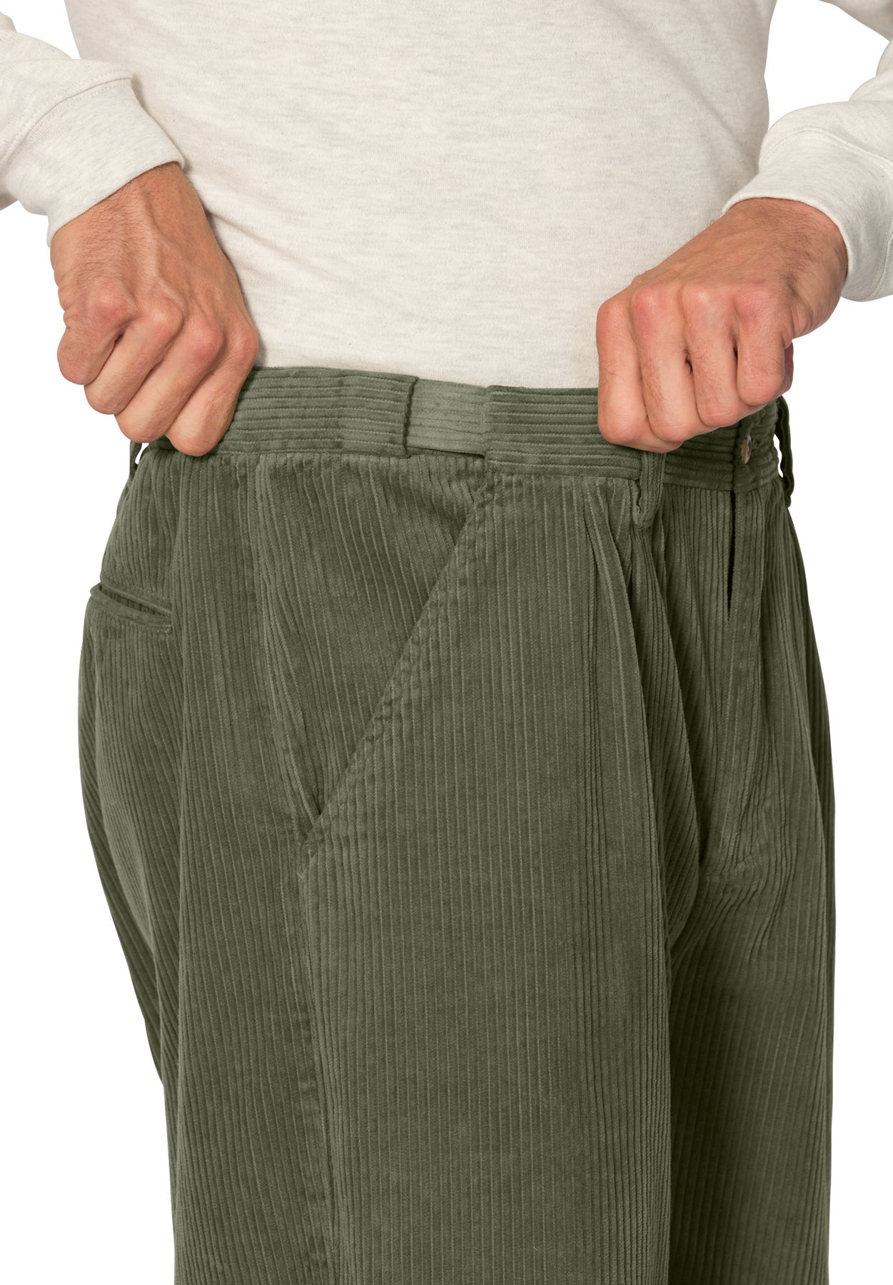 Expandable Waist Corduroy Pleat-Front Pants | KingSize