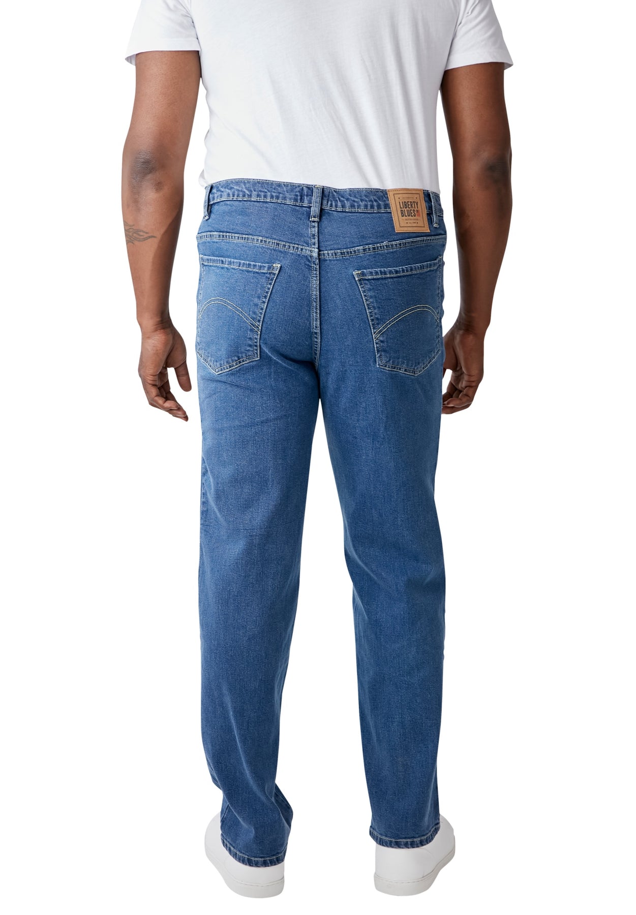 Our Liberty Blues™ Relaxed-Fit Stretch 5-Pocket Jeans are sure to be your new favorite pair of jeans - for casual work days, going out, and just hanging out! We've improved the durability and stretch in our denim, so you're sure to get long-lasting comfort at any size and length. For a below-the-waist fit, we recommend you order a size down.