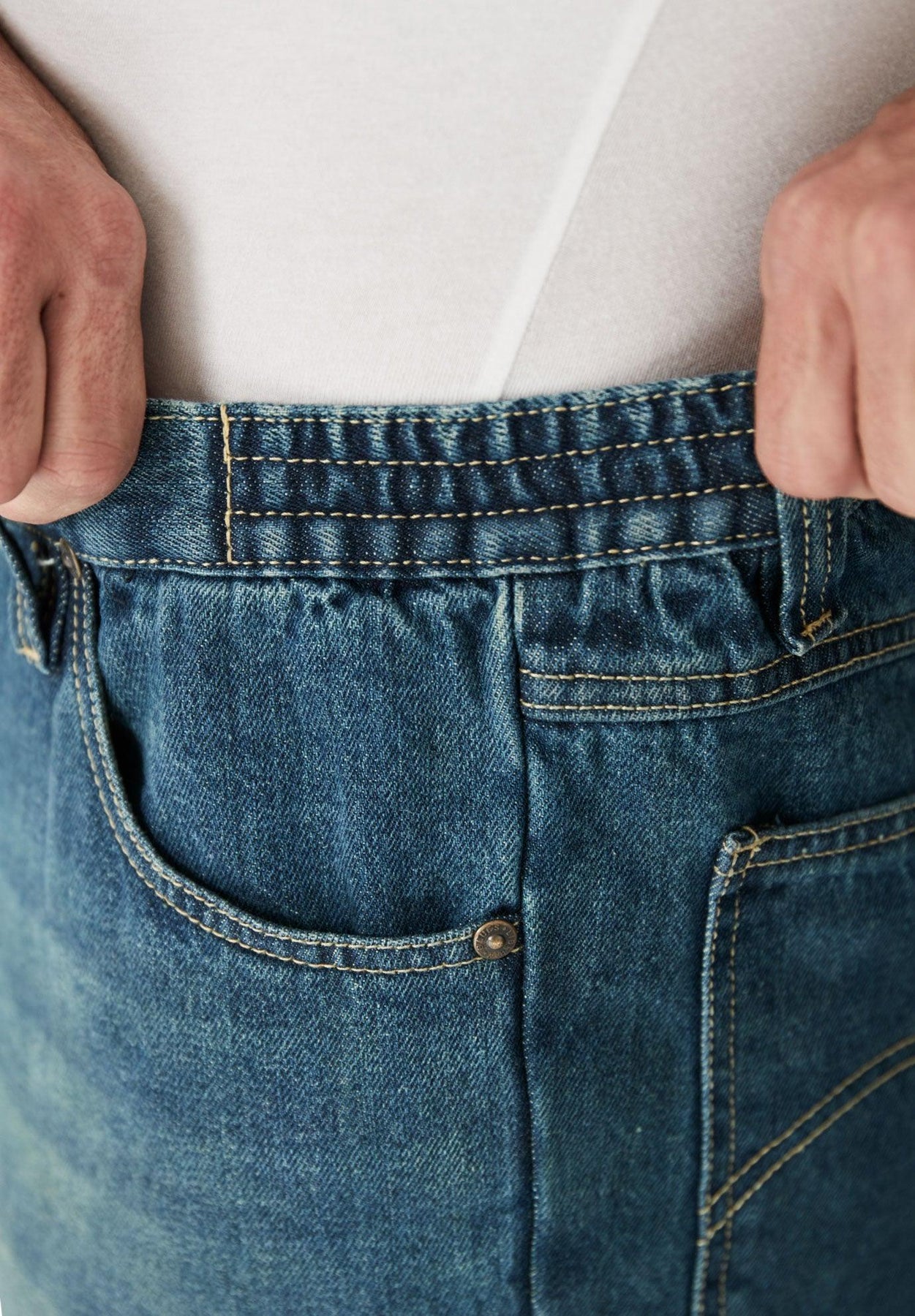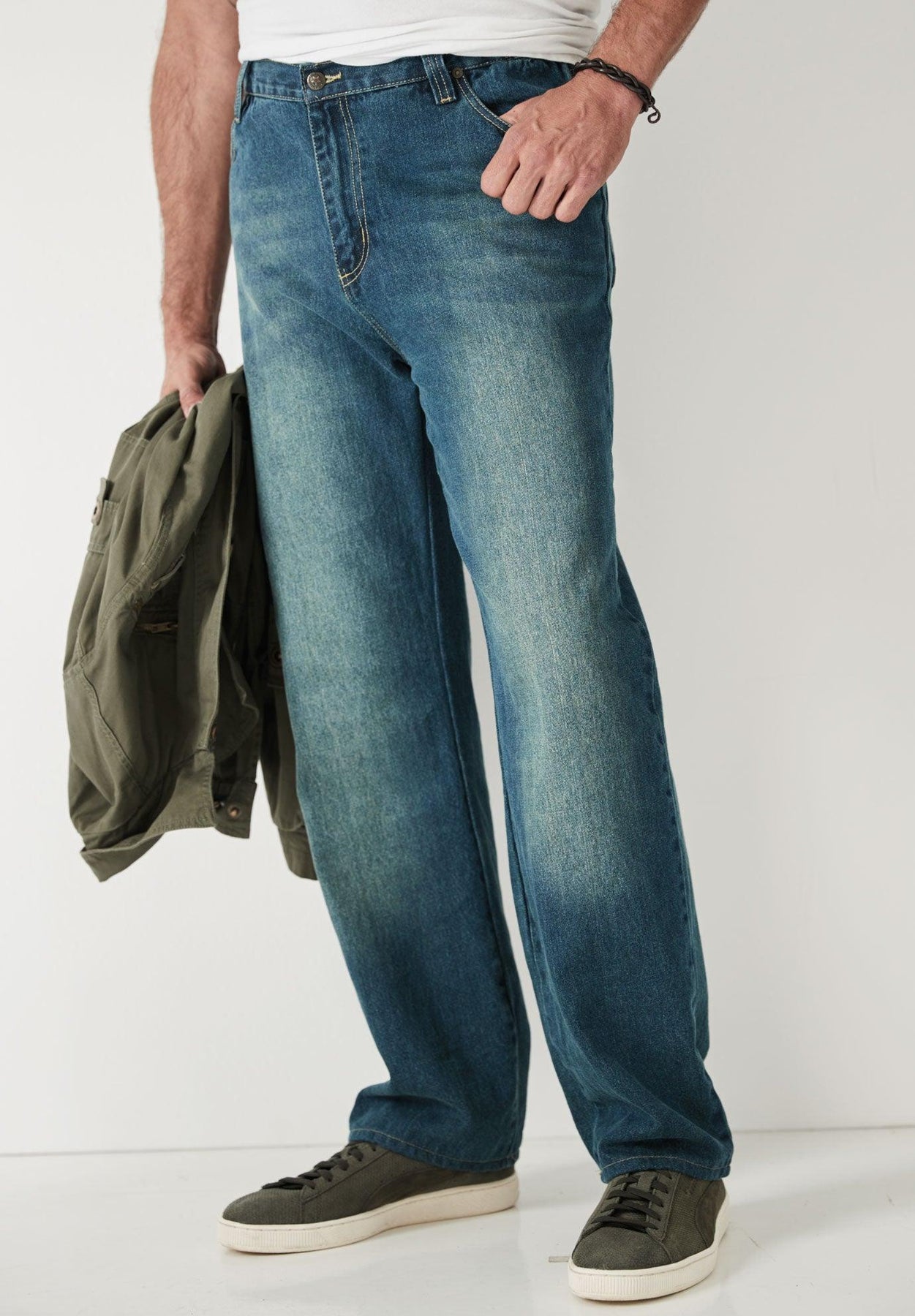 Liberty Blues™ Relaxed-Fit Side Elastic 5-Pocket Jeans are an easy-wearing classic. We've improved the durability of our denim and added an elastic waist, so you're sure to get long-lasting comfort day after day. For a below-the-waist fit, we recommend you order a size down.