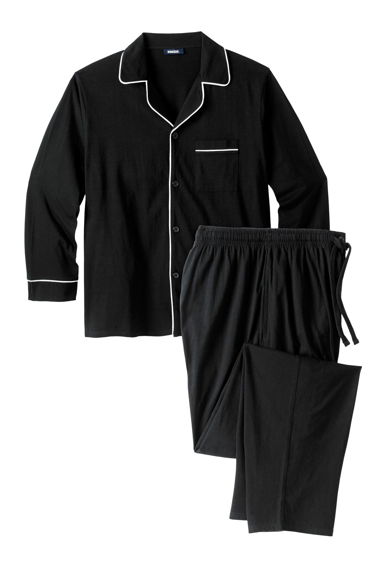 Upgrade your worn pajamas with this Long Sleeve Pajama Set. The shirt has all the classic features of a button down with piping on collar, cuffs, and pocket. The open bottom pants are relaxed fit with a comfortable full elastic waistband and adjustable drawstring.