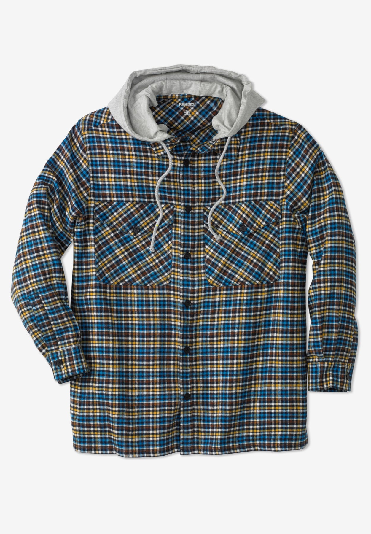 The ultimate layer for changing seasons with a removable jersey drawstring hood. Soft and lightweight brushed flannel keeps the chill out without the bulk.