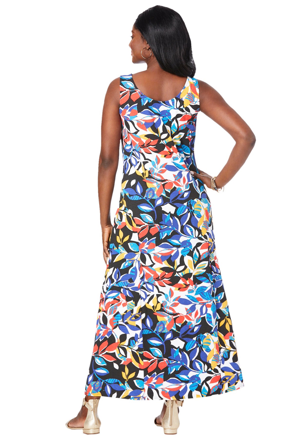 Scoop-neck tank dress in a feminine A-line silhouette.