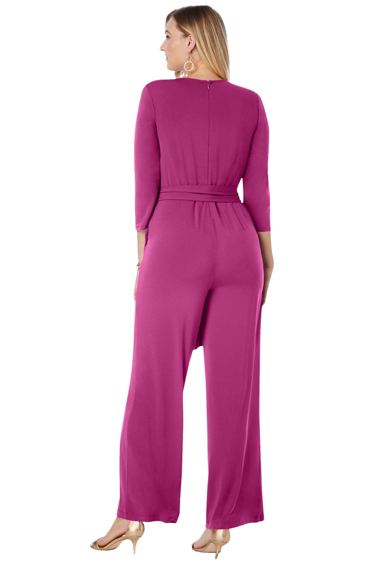 This easy one-step outfit will take you from day to night in comfort and style. With figure-flattering details such as a blouson waist and a sophisticated surplice front, you will love the way you look and feel in this wide-leg jumpsuit. The removable self-tie belt sits at the natural waist and the back zipper offers a simple way to get in and out of this timeless style. Just step into pumps or your favorite flats to complete your look!