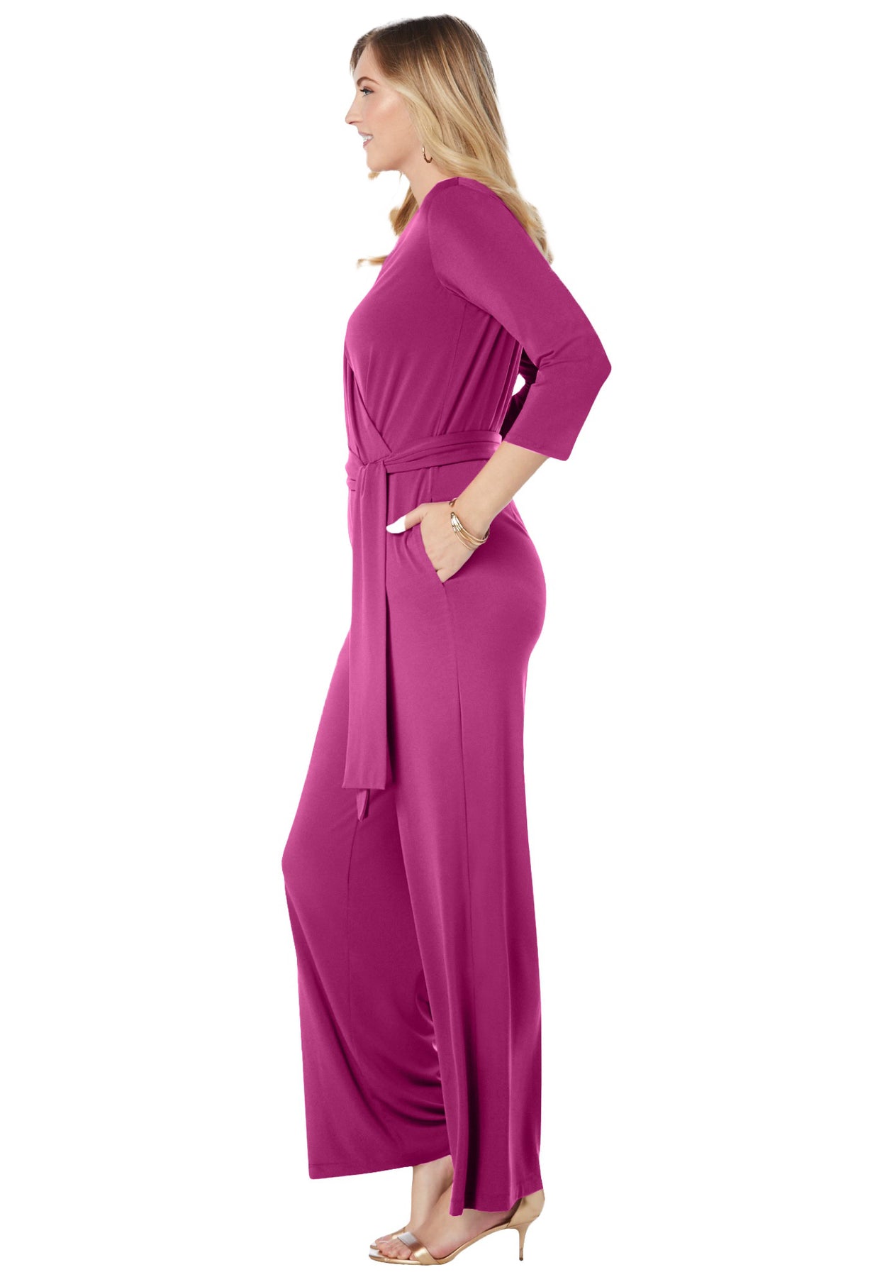 This easy one-step outfit will take you from day to night in comfort and style. With figure-flattering details such as a blouson waist and a sophisticated surplice front, you will love the way you look and feel in this wide-leg jumpsuit. The removable self-tie belt sits at the natural waist and the back zipper offers a simple way to get in and out of this timeless style. Just step into pumps or your favorite flats to complete your look!