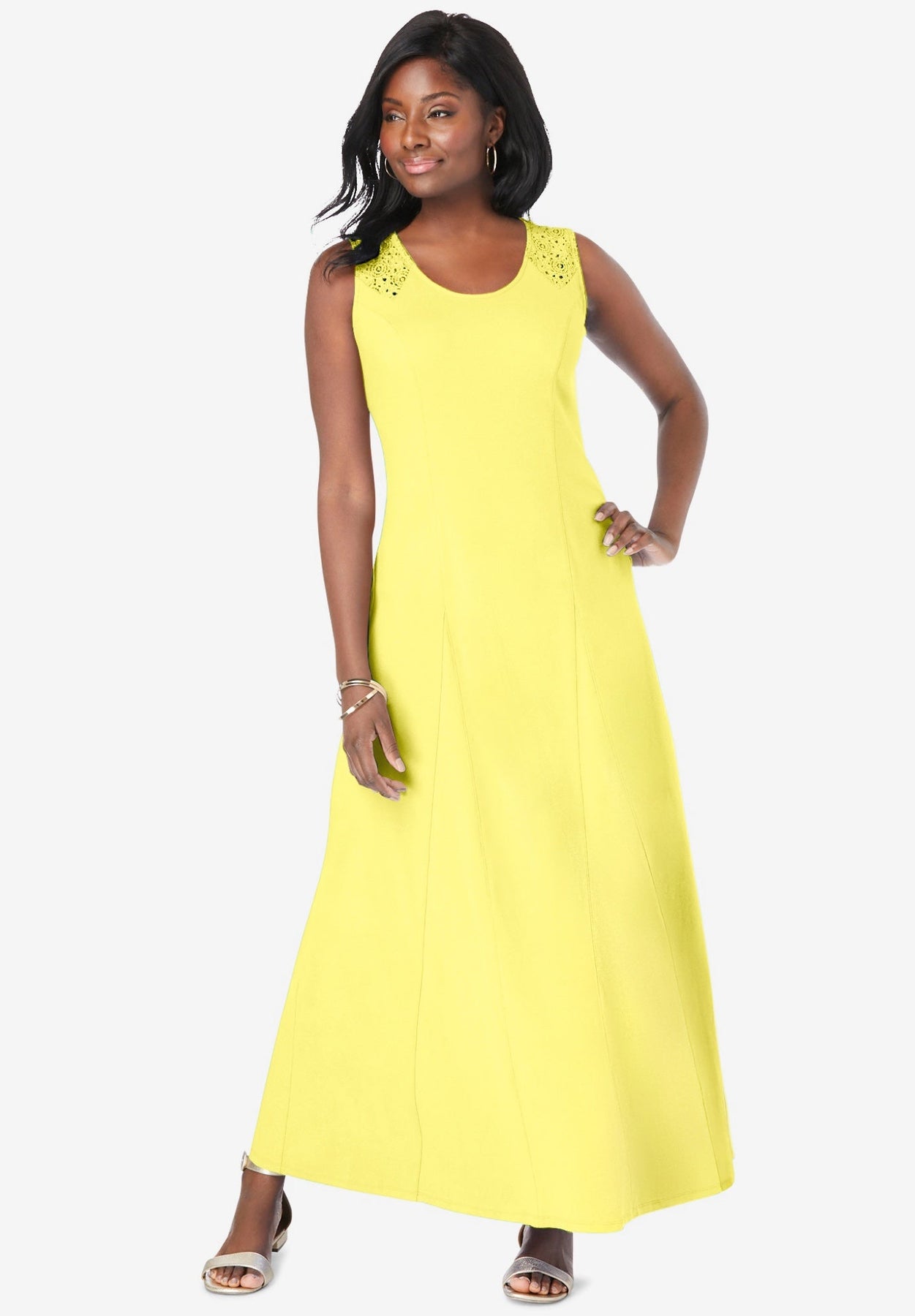 Our customers are appreciating our latest spring and summer maxi dress collection. They are liking the little feminine details added to classic silhouettes, like the crochet detail in this one.