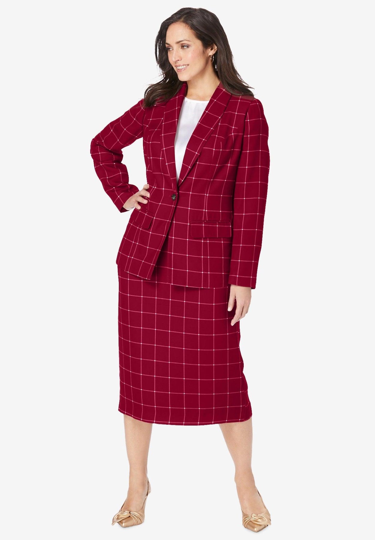 This signature single-breasted skirt suit has a classic silhouette and an impeccable fit that gives you a sophisticated look any time of the year.