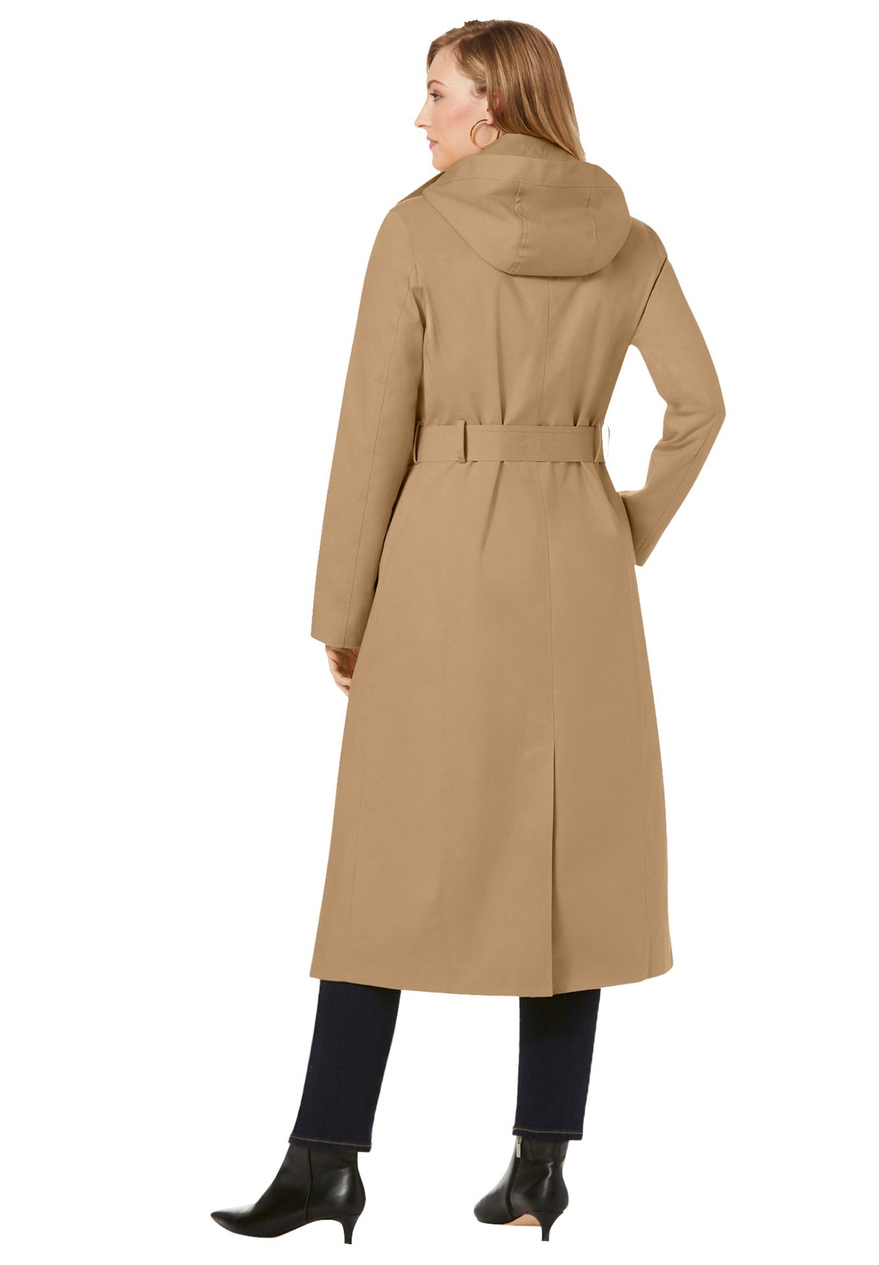 This long double breasted raincoat is figure flattering and ultra-chic, and easy to pair over everything from a pantsuit to your favorite jeans. With a detachable hood and tie waist, there's nothing about this top layer that you won't love.