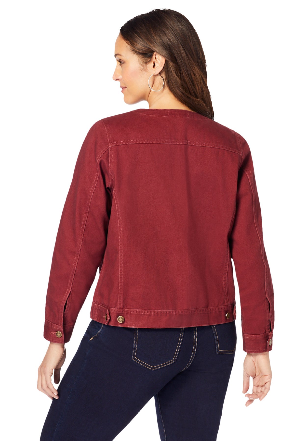 The denim jacket you love, now collarless! Elevate your weekend style with this figure-flattering jacket fit to flatter your curves.