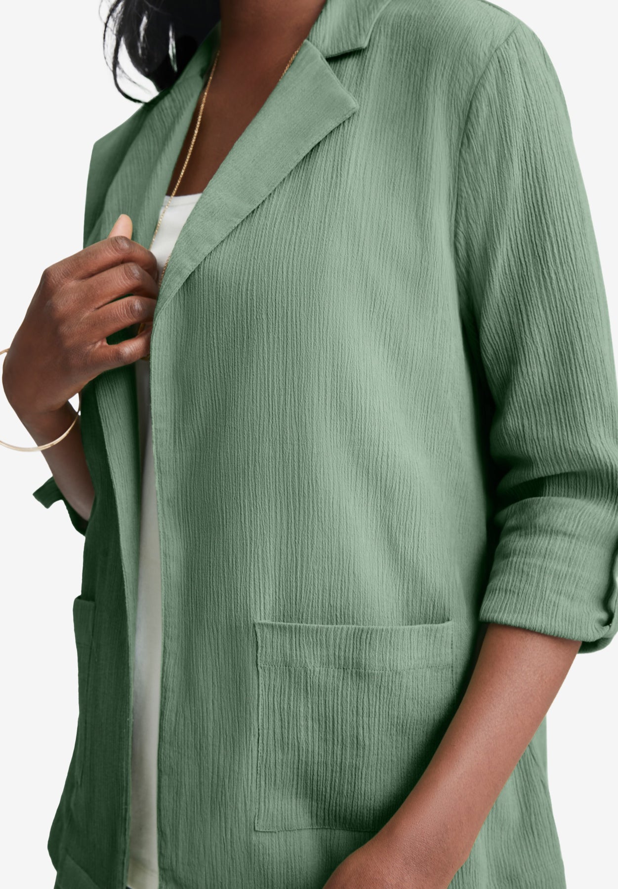 Top off your outfits with a jacket you can ease into. Breezy cotton gauze fashioned into a relaxed silhouette with three-quarter, roll-tab sleeves. Pair with our Wide Leg Gauze Pant for a chic, coordinated look.