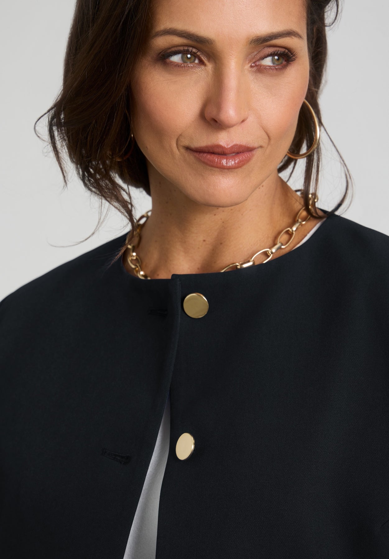 The name says it all! This chic and sophisticated silhouette is a must-have for updating your workwear this season. The collarless design adds a feminine touch to classic suiting. Layer it over our Bi-Stretch Sheath Dress for a flawless look that will take you from commute to cocktails.