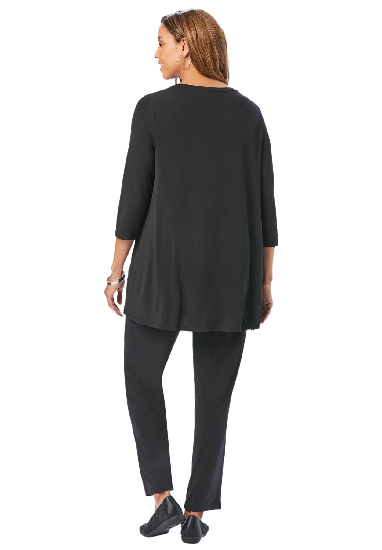 Crafted from our premium stretch jersey fabric, the Jessica London women's plus size Mega Swing Set is the style due your wardrobe is missing! Features a trapeze top with a feminine drape and a straight leg pant with a modern, tailored finish.