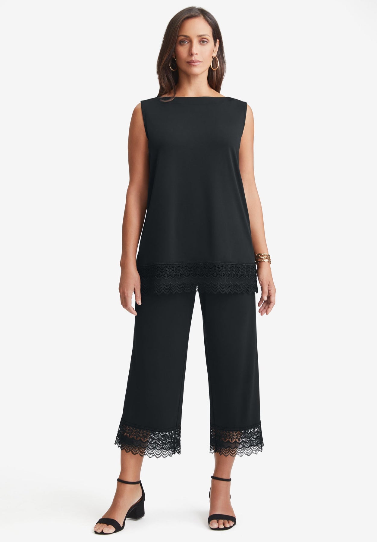 2-Piece Stretch Knit Lace Trim Crop Set