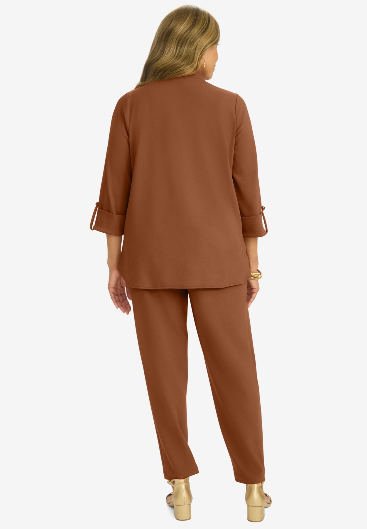 Effortless outfitting reaches new heights of style with the Jessica London women's plus size Knit Crepe Winged Set. Whether you're in and out of meetings at the office or going out on the town in the evening, you'll always feel put-together in this set.