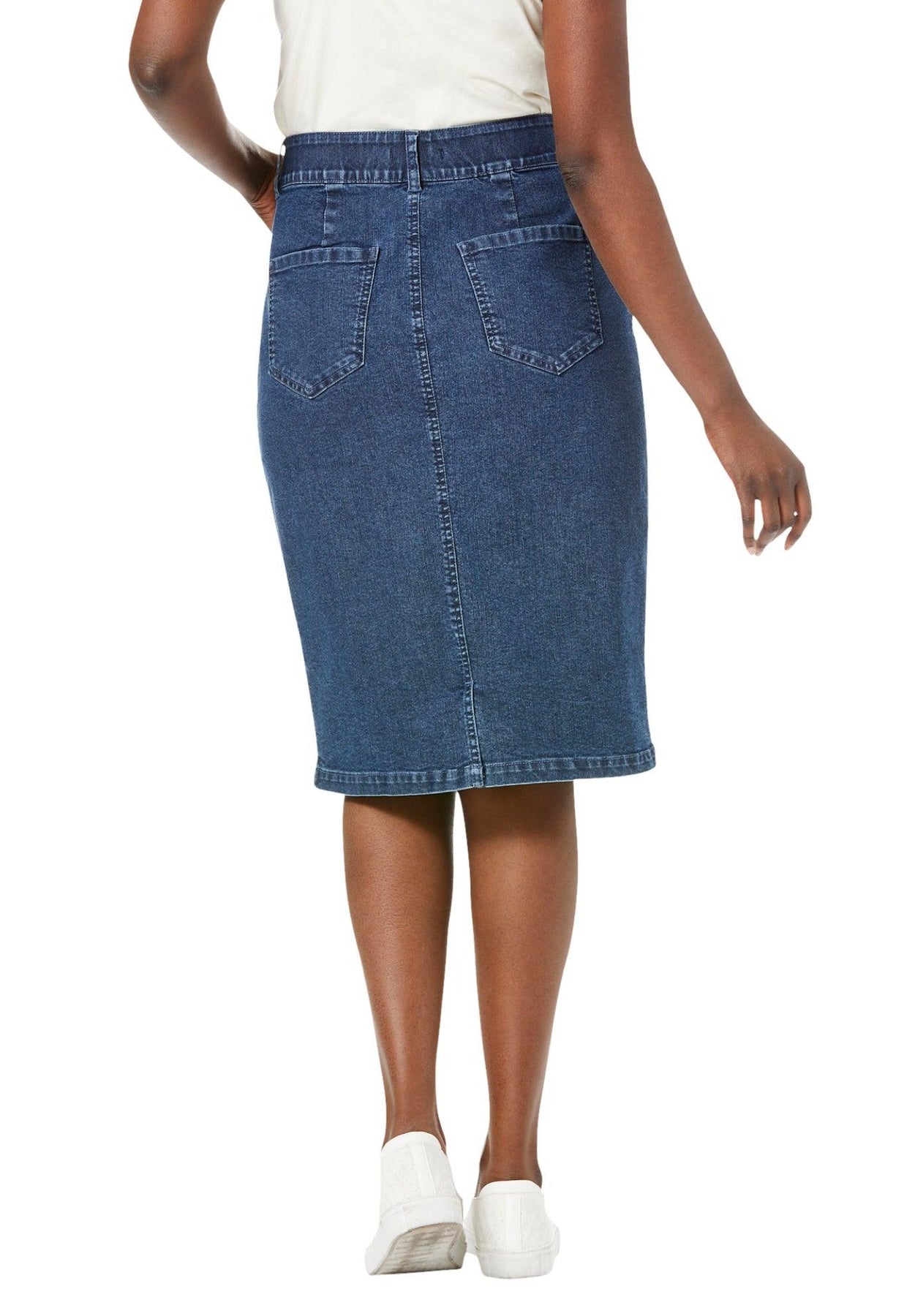 Plus size denim skirt in sizes 12, 14, 16, 18, 20, 22, 24, 26, 28