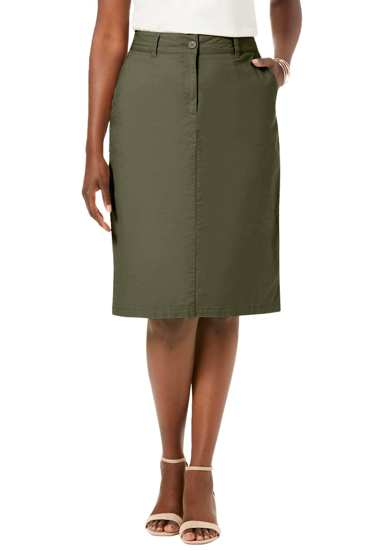 Classic chino only better because this cotton twill has a hint of stretch that always looks polished. This straight skirt always looks polished whether you dress it up for work, or dress it down for a relaxed weekend.