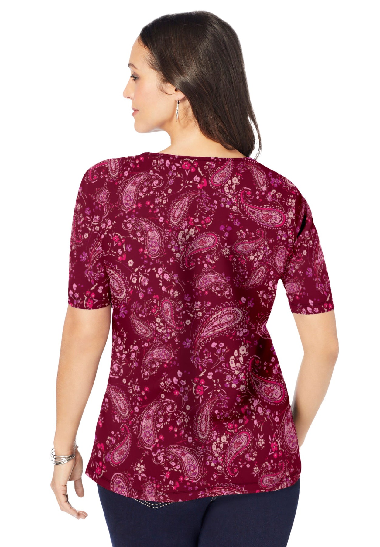 The Jessica London women's plus size Stretch Cotton Square Neck Tee is a better-than-basic, must-have addition to your everyday wardrobe for season-spanning style. Features a tailored fit with a framed square neckline.