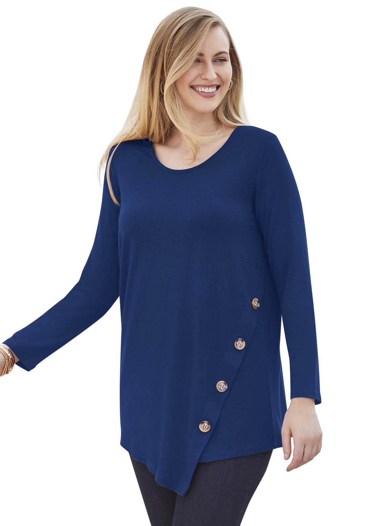 We've refreshed the everyday tunic with non-functional buttons on the side that add visual interest. Pair it with jeans to finish your look.
