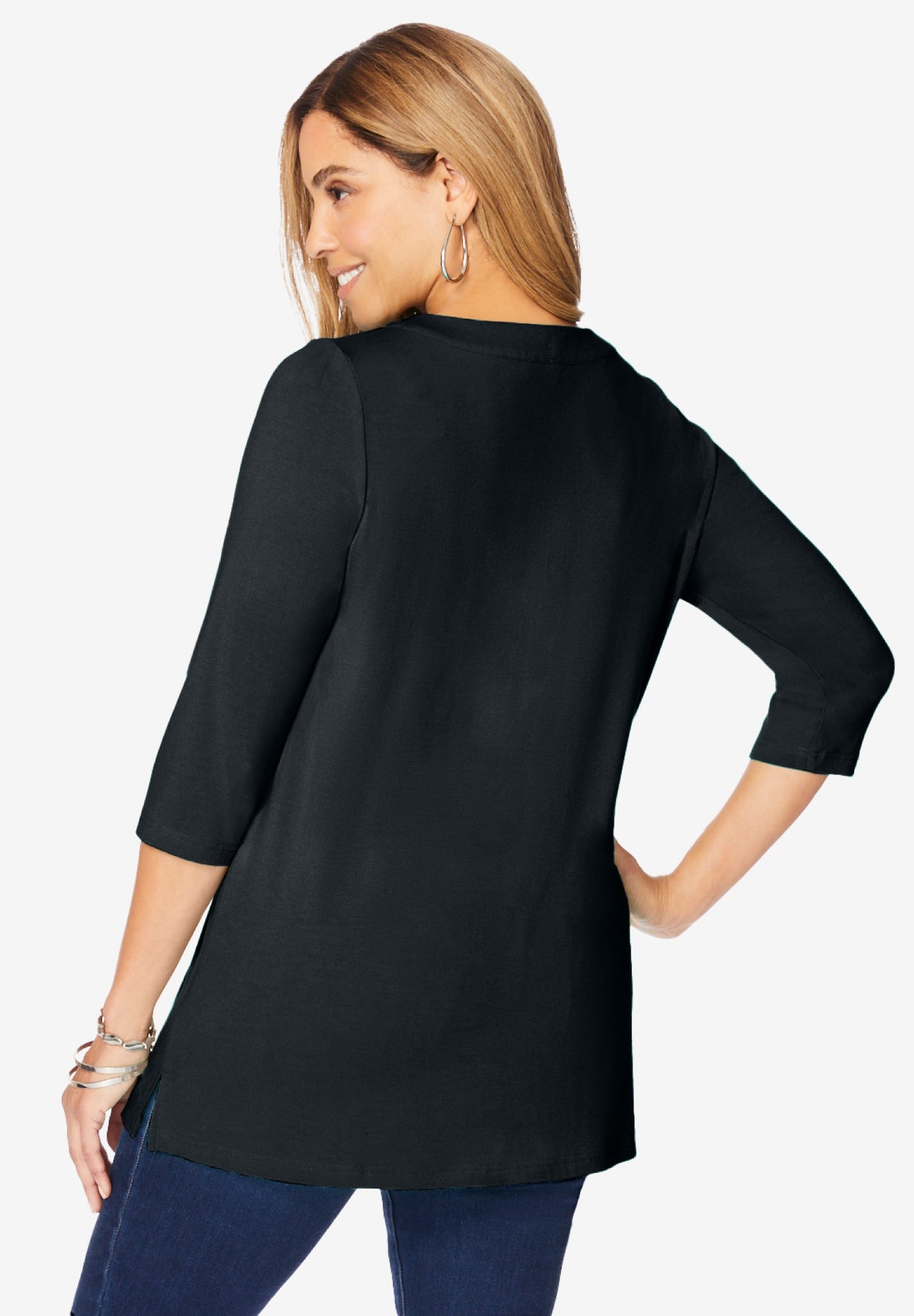 A go-to, figure-flattering tunic in a stylish straight silhouette with a sporty half-zip neckline that’s perfect for all-season wear. Style it with jeans, skirts, or leggings!