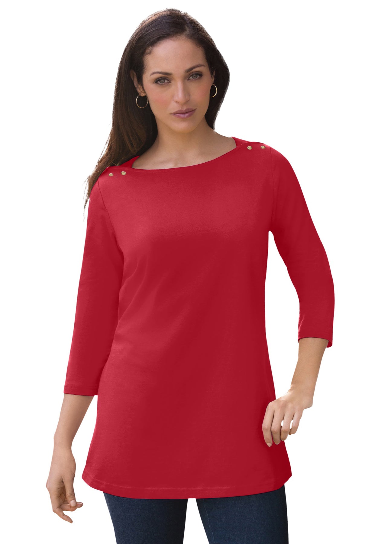 This timeless boatneck tunic is a staple in everyday essential for every body. The universally flattering relaxed fit is easy to dress up or down for any occasion, and the longer, tunic length eases over all of your favorite bottoms. Available in bright, bold hues, as well as pretty patterns and prints, you can wear this tunic everyday!