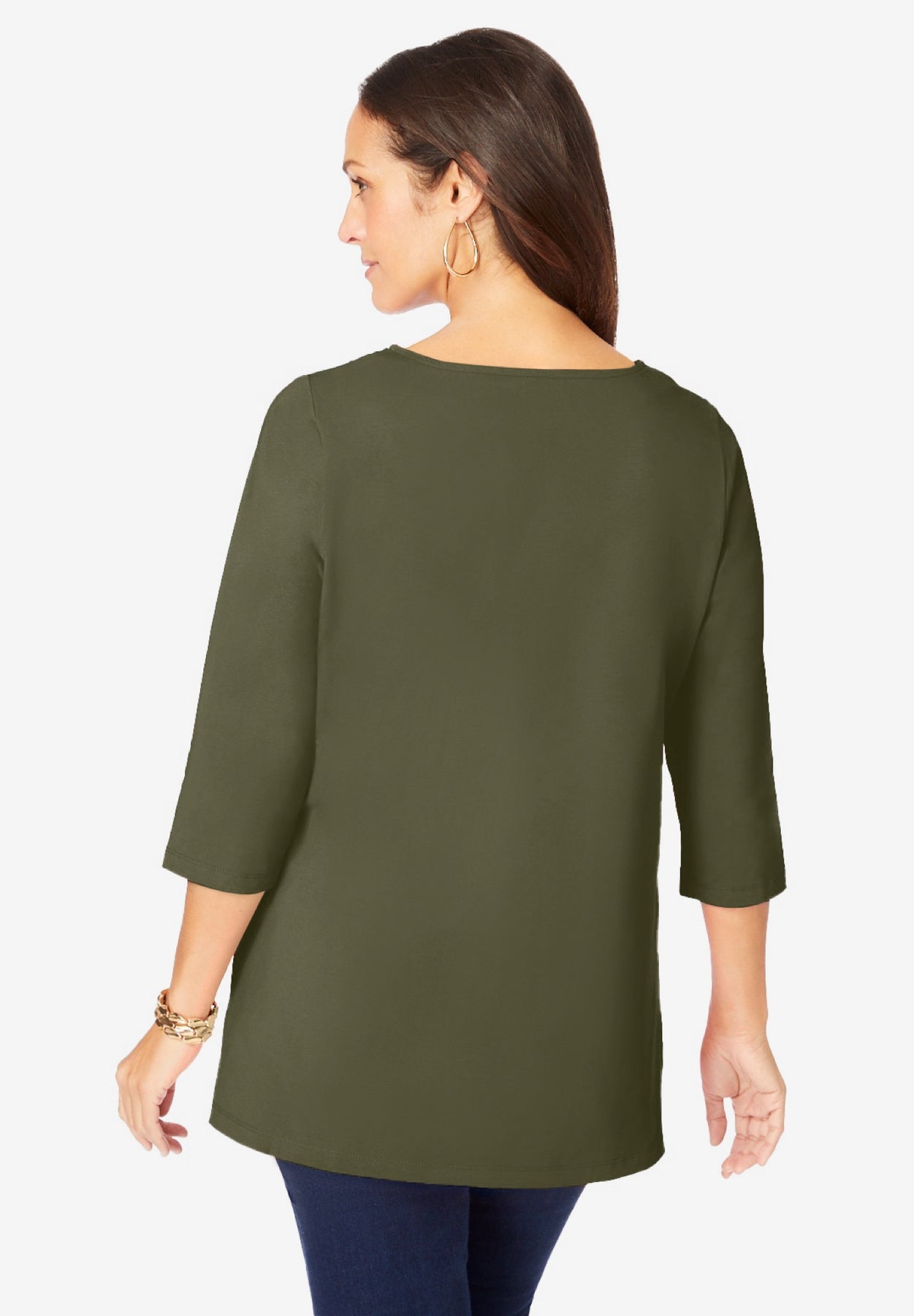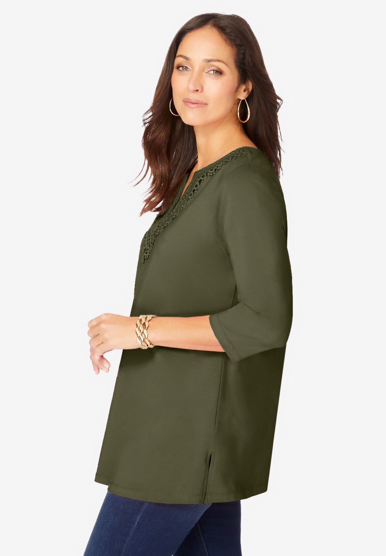 Stretch Cotton Crochet Notch Neck Tunic | Jessica London