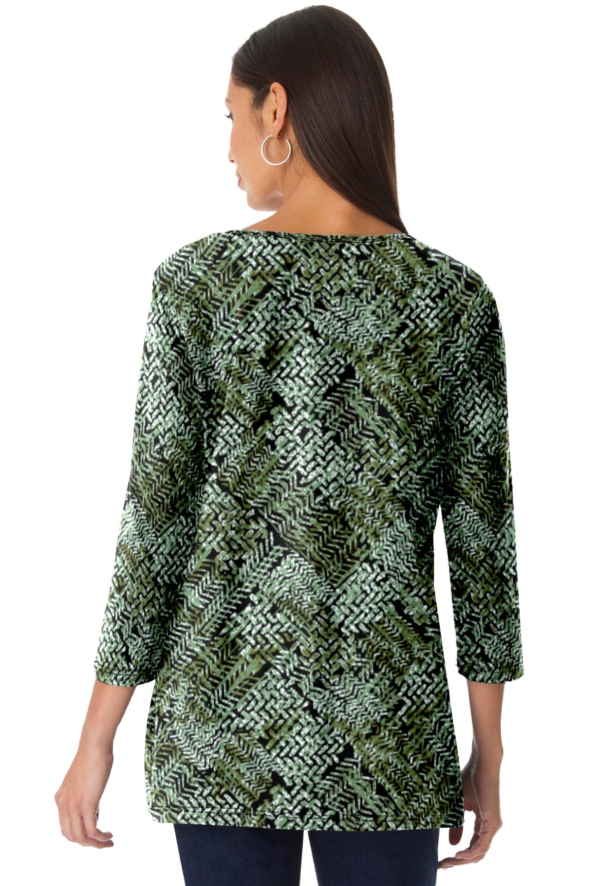 The Jessica London women's plus size Stretch Cotton Scoop Neck Tee is the perfect way to top off any look with three-quarter sleeves for season-spanning style. The straight silhouette offers a polished and figure-flattering look that eases over dress pants, skirt, jeans and capris.