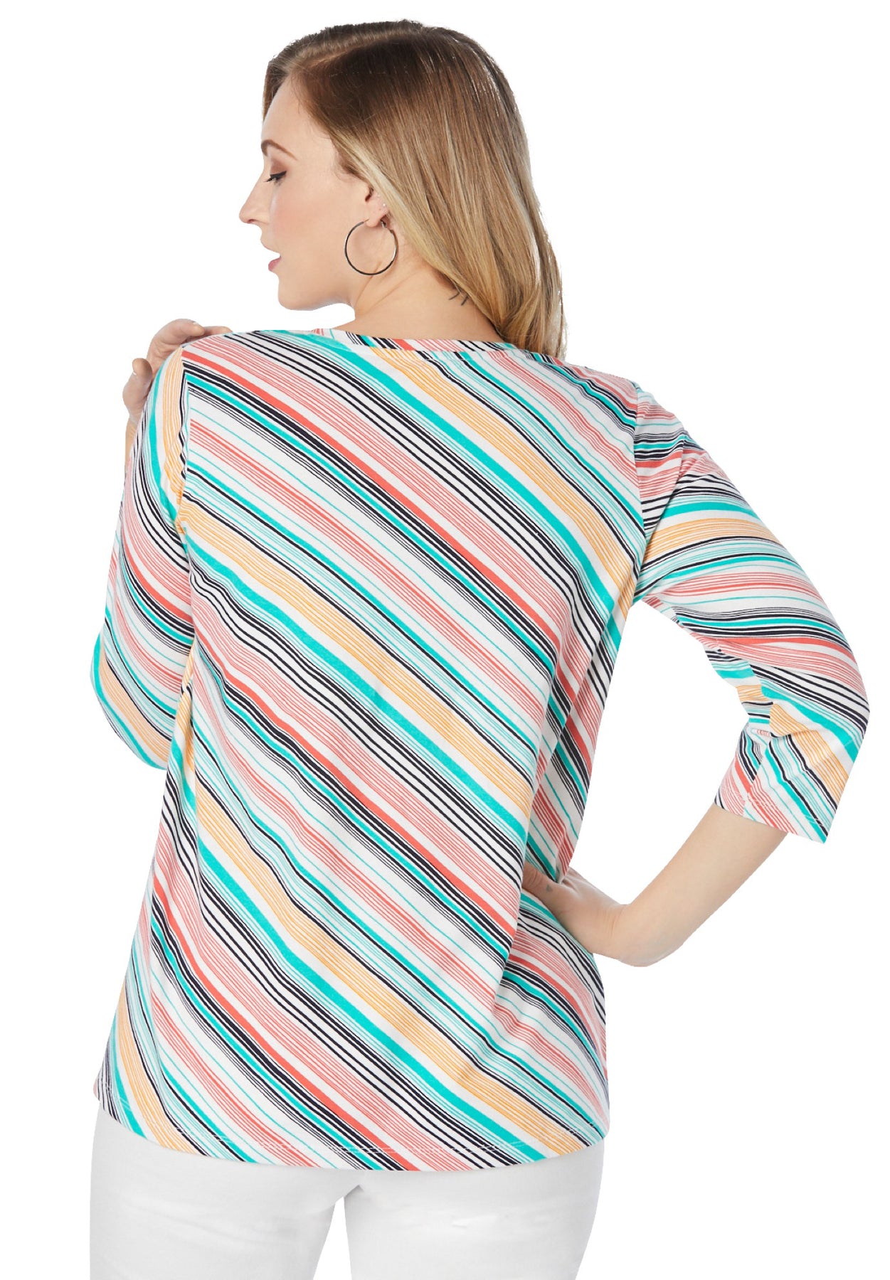 A classic and comfortable staple in every woman's wardrobe, this feminine V-neck tee is better than basic. Striking the perfect balance between fitted and relaxed, complete with three-quarter length sleeves, this everyday essential style is cool enough to wear out, yet cozy enough to lounge in.