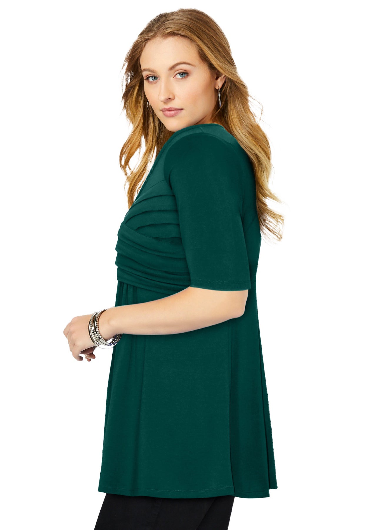 Stretch Knit Pleated Tunic