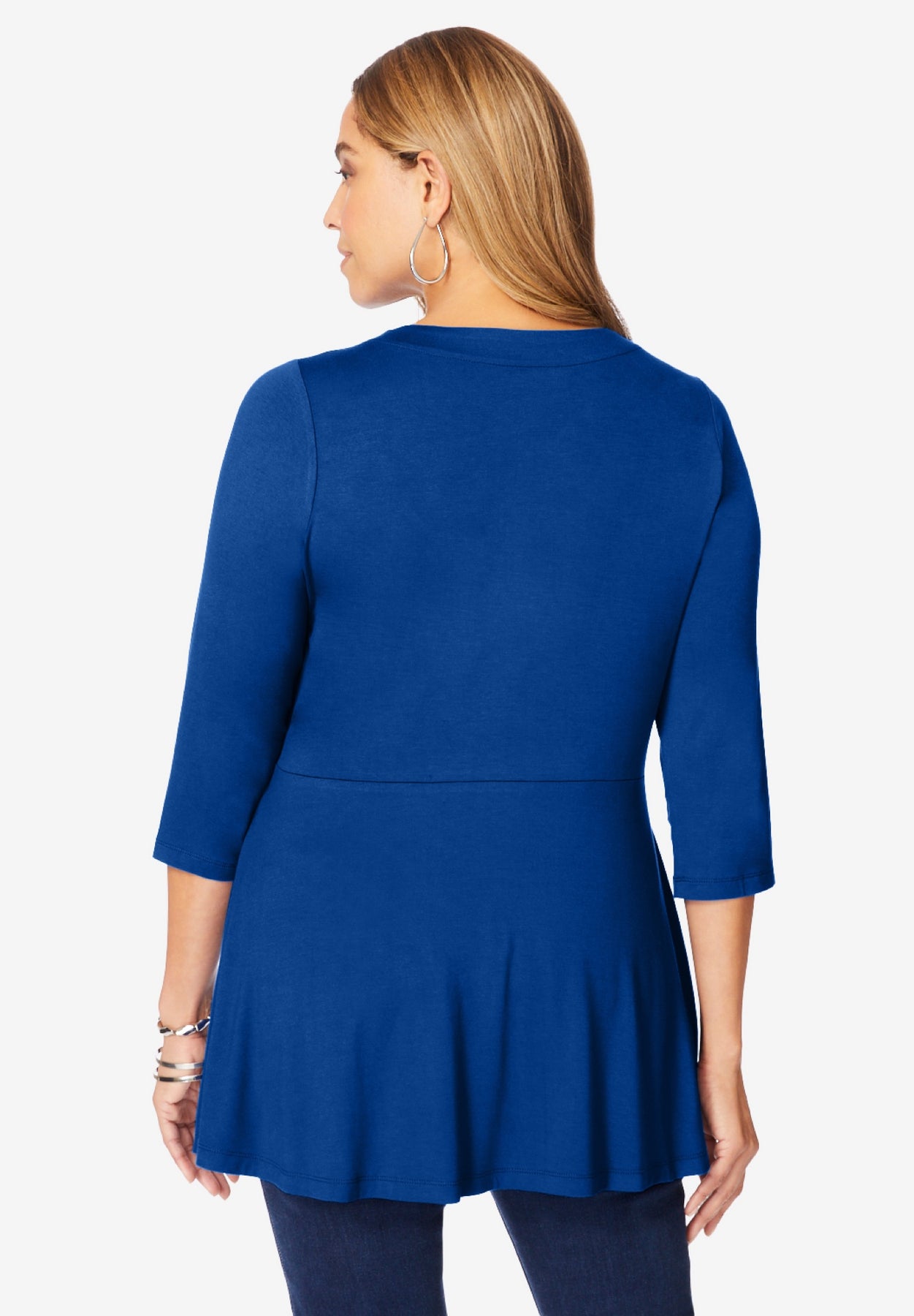 Stretch Knit Henley Notch Babydoll Tunic | Jessica London