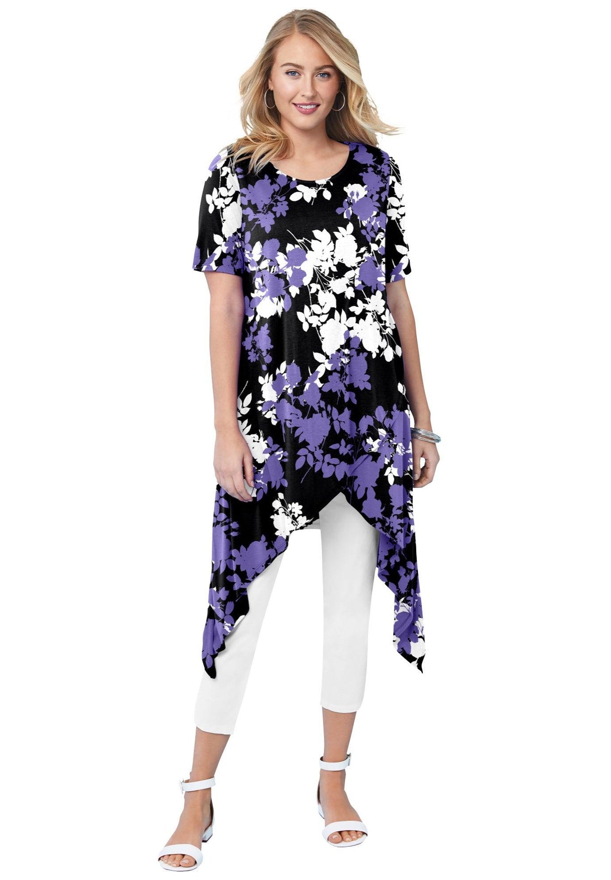 This stylish side point tunic is the perfect way to top off every warm-weather look. With an A-line shape, fluid drape and fabulous front overlay, this lovely look hits every style point - right down to its pointed sides, too! Ease over leggings for a casual-cool weekend look, or wear with ankle pants or a feminine skirt to take your 'fit from day to night.