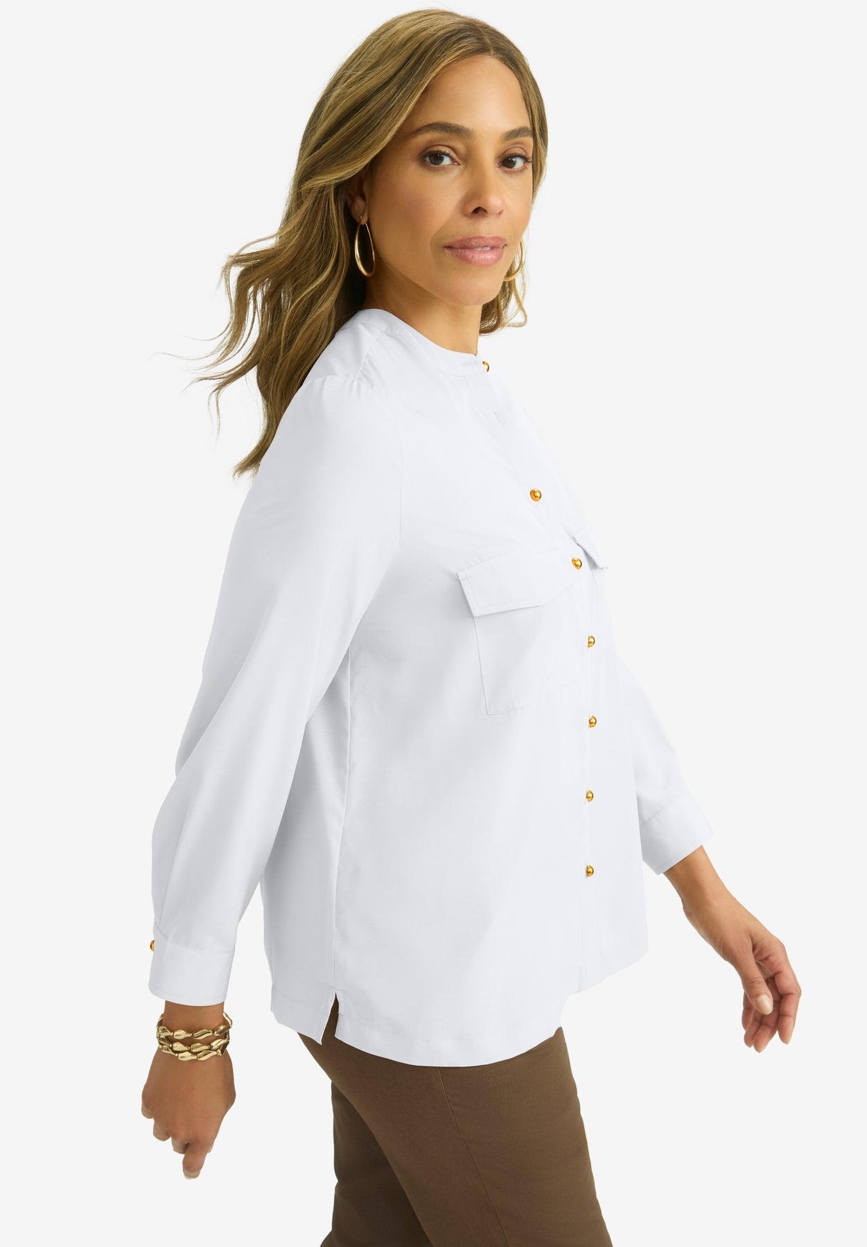 This blouse is just what you need to elevate your casual wardrobe. The gold dome buttons add a touch of ladylike charm to the utility-inspired chest pocket flaps and shoulder tabs. Pair it with our Straight Leg Chino Pants for a statement-making casual look.