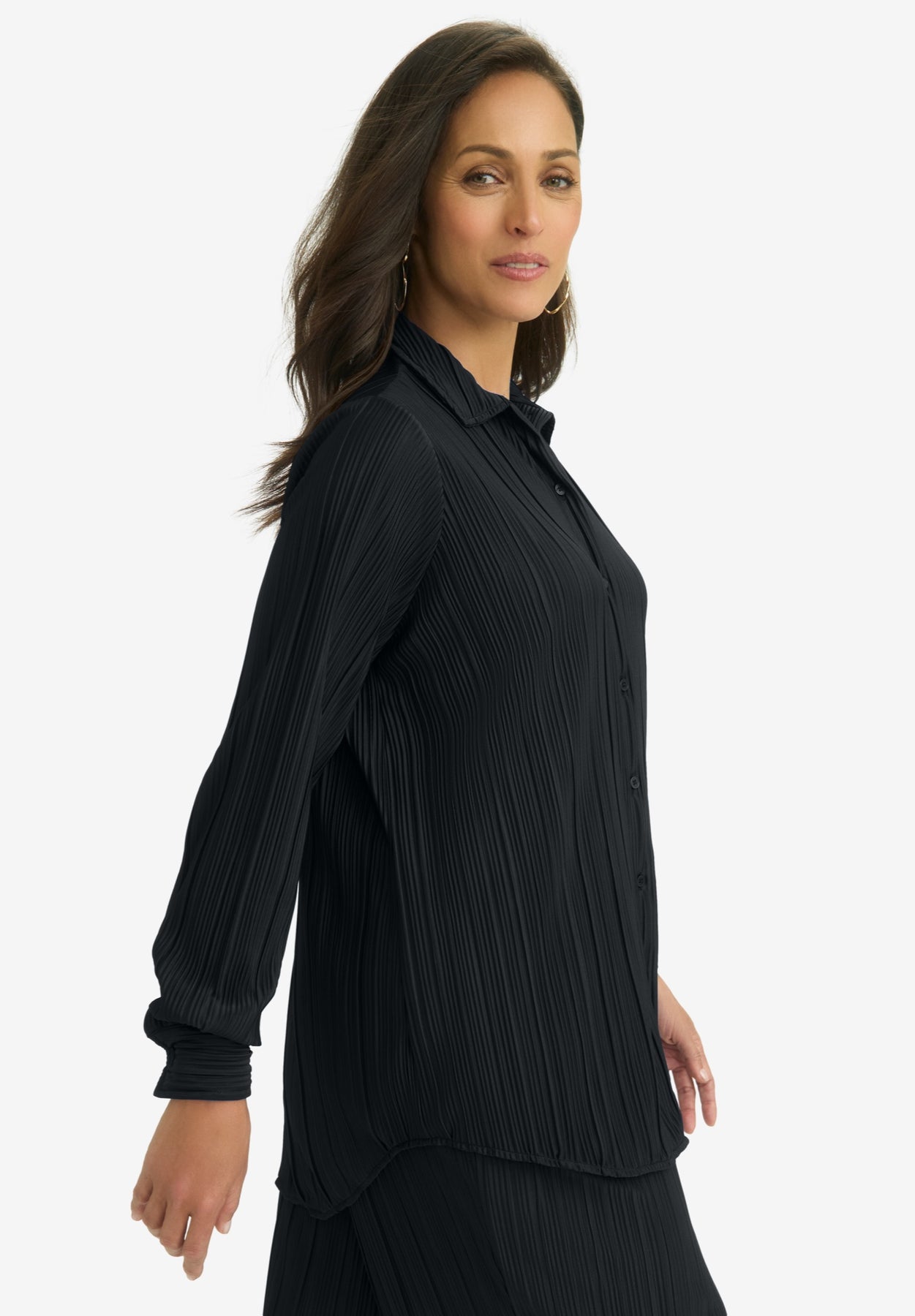 Plisse Button-Front Blouse