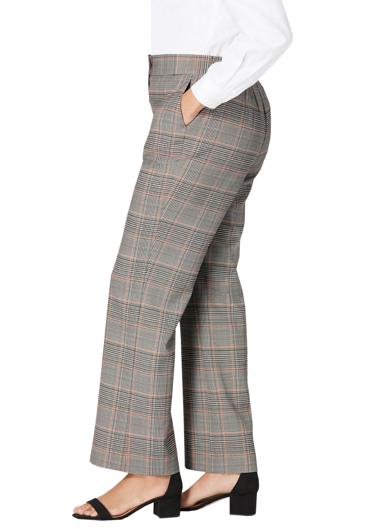Our new slimming suiting collection features improved 2-way stretch that holds it shape and moves with you as you move through your busy day. Hidden tummy control panels offer a slimming fit. Back elastic insets; front slash pockets; button-zip closure.
