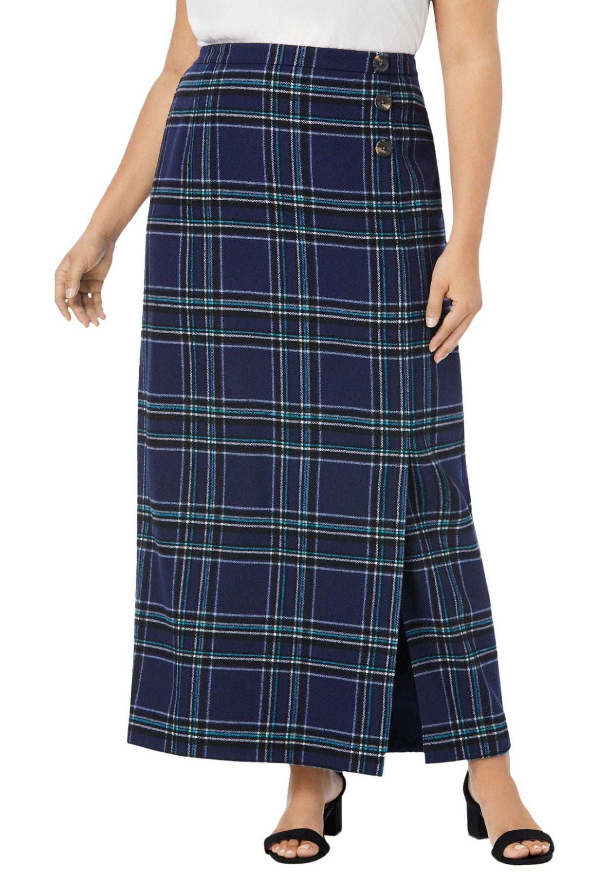 Pencil in your look for the week! This side-button plaid skirt is the perfect piece addition to your wardrobe. Pair it with a turtleneck blouse & a blazer to complete your 9-to-5 look.