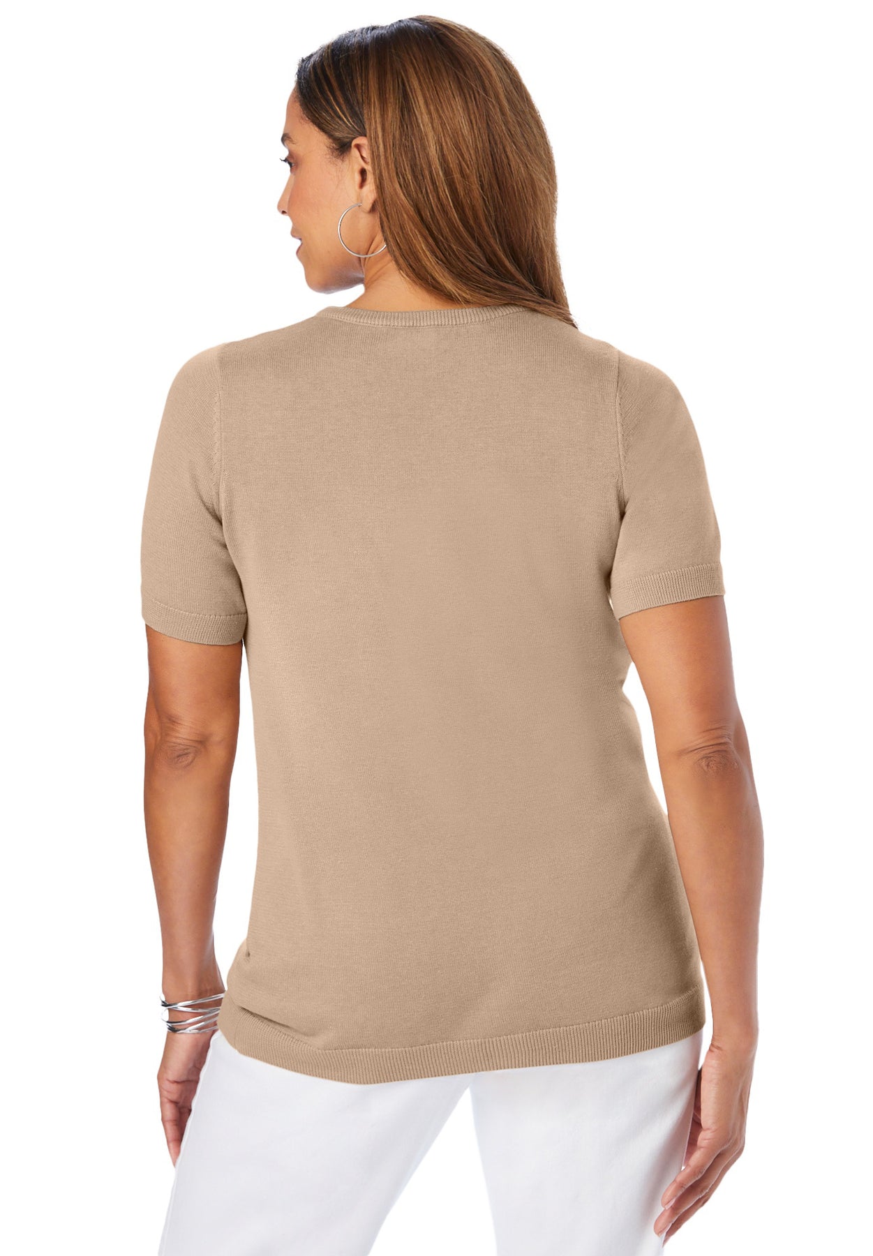 A polished fine-gauge knit shell designed for comfortable coverage and effortless, season-to-season styling.