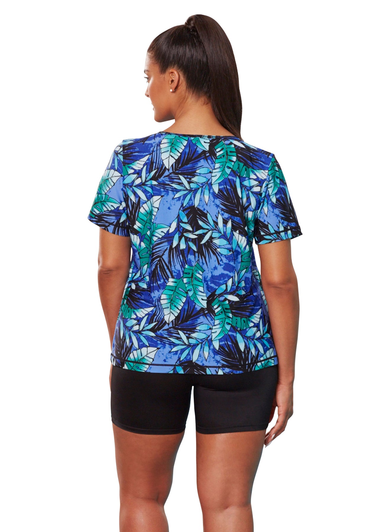 We have comfort and coverage down to a tee! This chlorine resistant swim tee has an easy, relaxed silhouette and is made with no-fade fabric designed to retain its fit and resist bagging. Available in a beautiful assortment of brightly colored prints to boost your mood. Wear over your favorite swimsuit or swim bra and enjoy every moment in the sun!