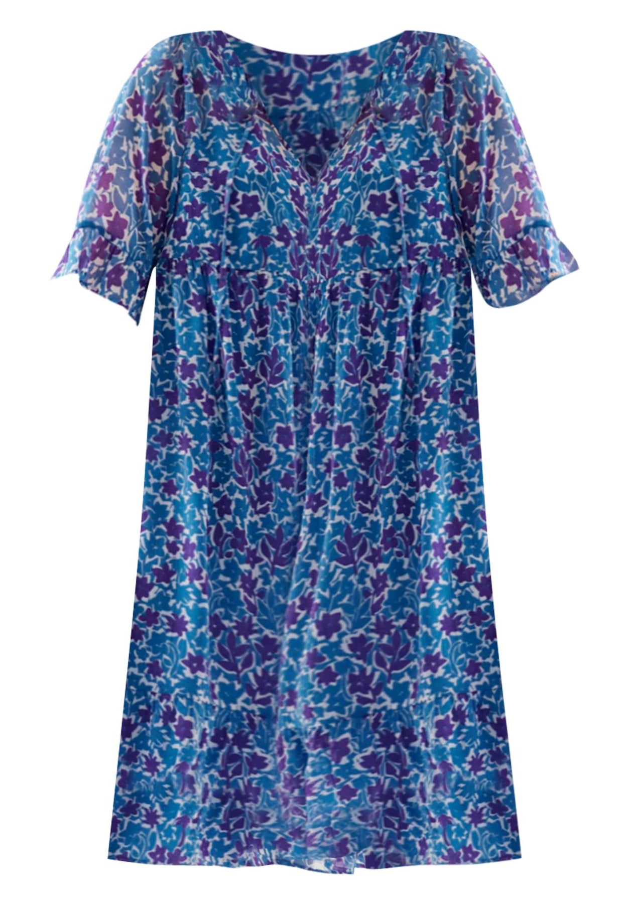 Light and breezy dress shaped with an empire seam and sweetened with a keyhole neckline, ruffled short sleeves and a flounce hem. The sheer chiffon dress flows over a solid, detachable tank slip. It goes classy with sandals, casual with sneakers.
