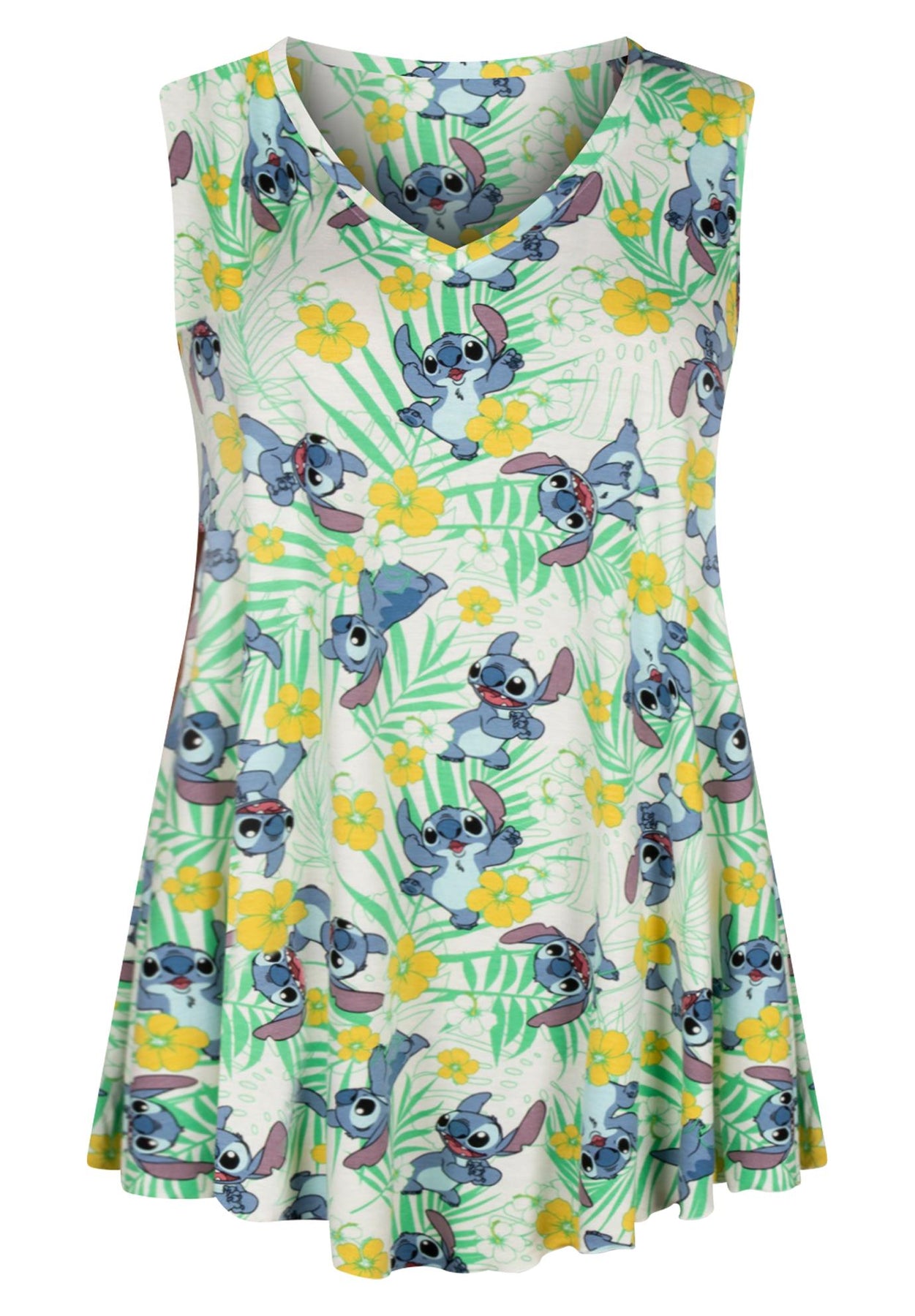 Elevate your everyday with a casual tee featuring a pointed hem now with Disney prints! Pair with jeans or a print wide-leg pants and throw on a denim jacket over your shoulder.