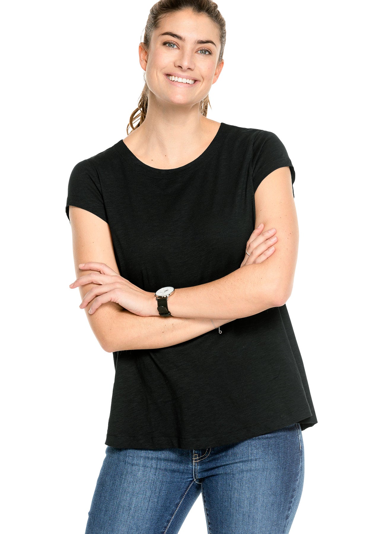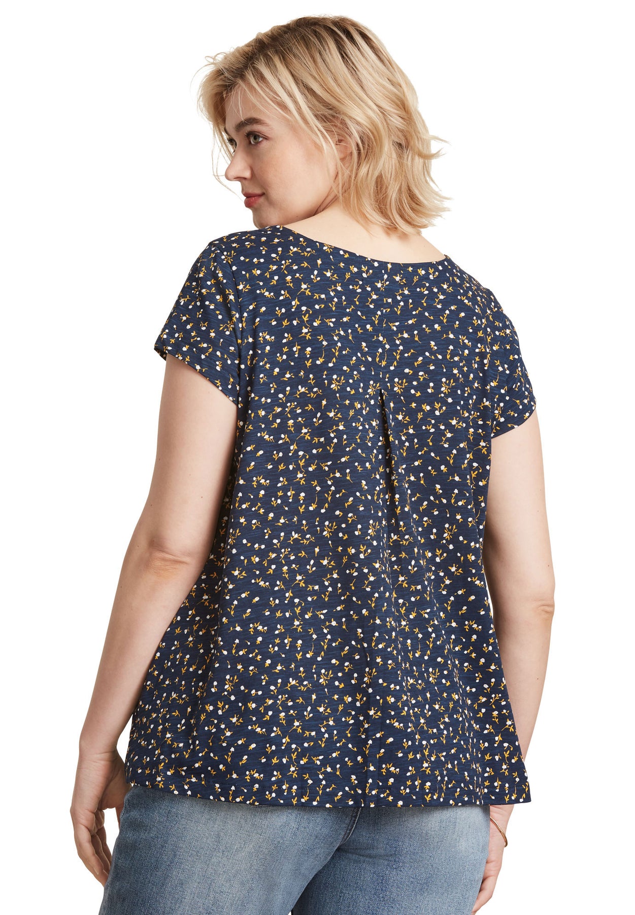This breezy cotton knit tee is an easy style favorite. The timeless trapeze silhouette, scoop neck and cap sleeves are fit to flatter every figure. An inverted back pleat gives it a relaxed feel that's perfect with jeans and shorts.