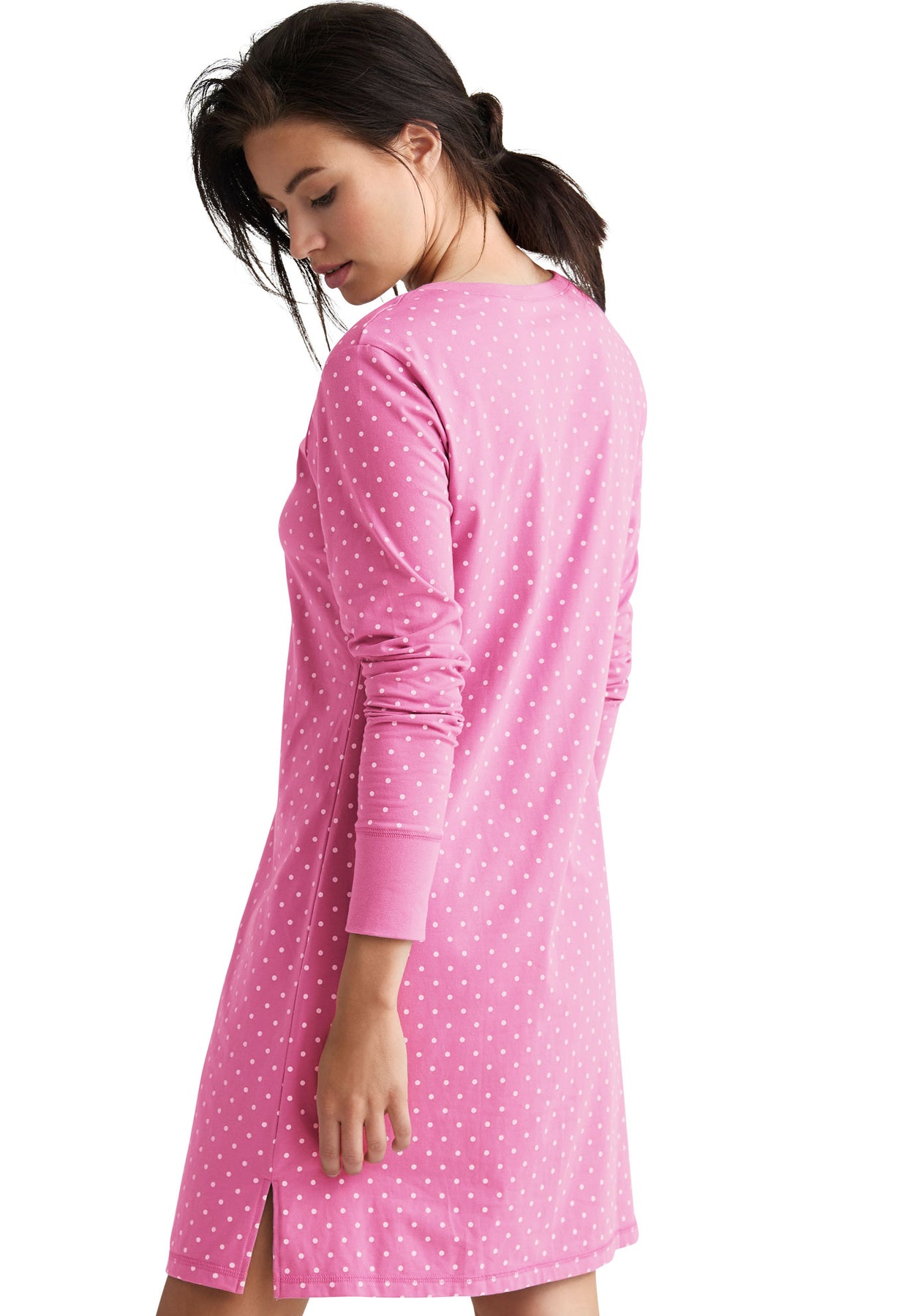 Soft and relaxed sleepshirt in a slight A-line silhouette. Scoop neck with henley placket and ribbed trim. Ribbed sleeve cuffs. Rounded shirttail hem.