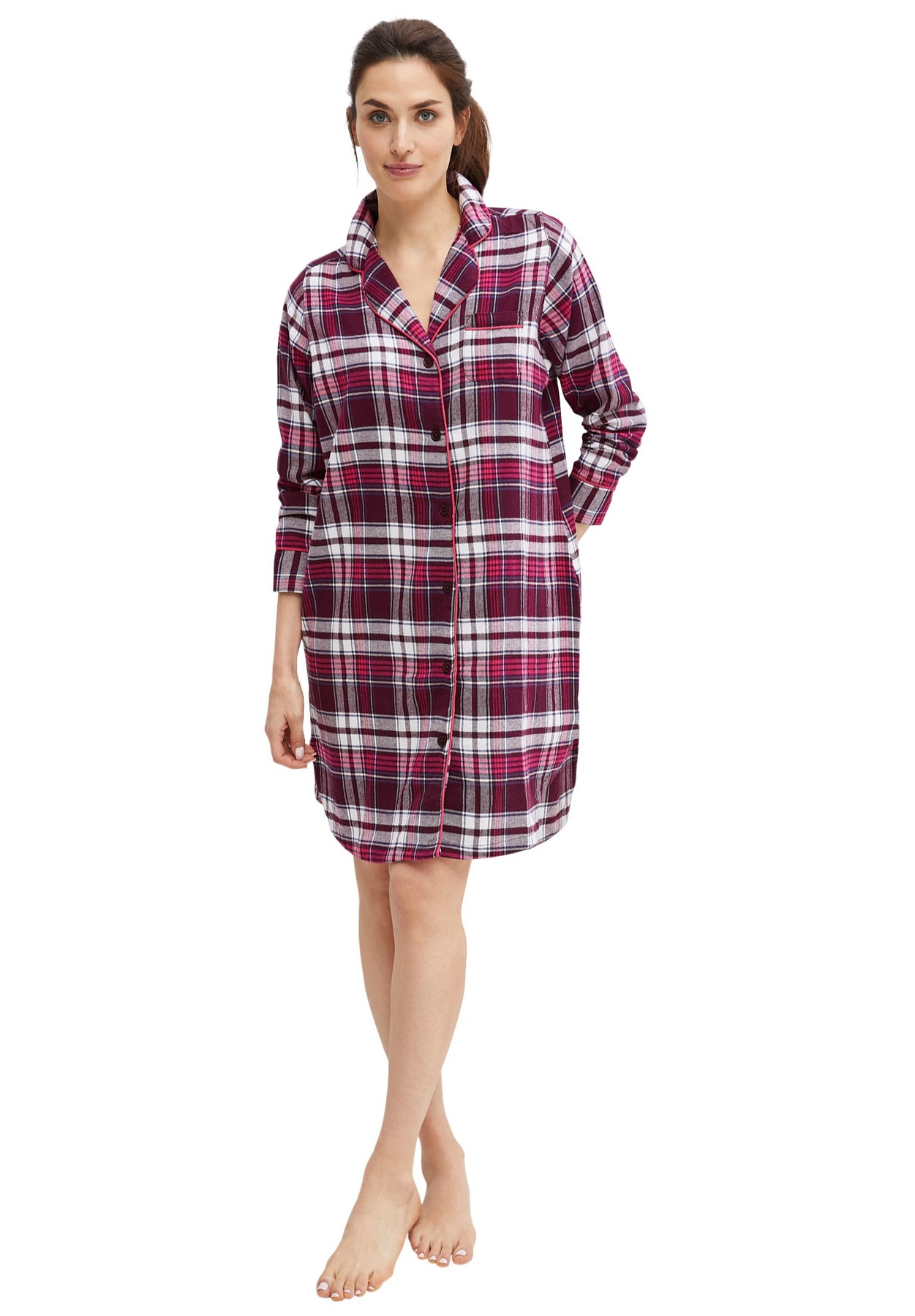 Get cozy in this brushed cotton flannel sleep shirt with classic styling.
