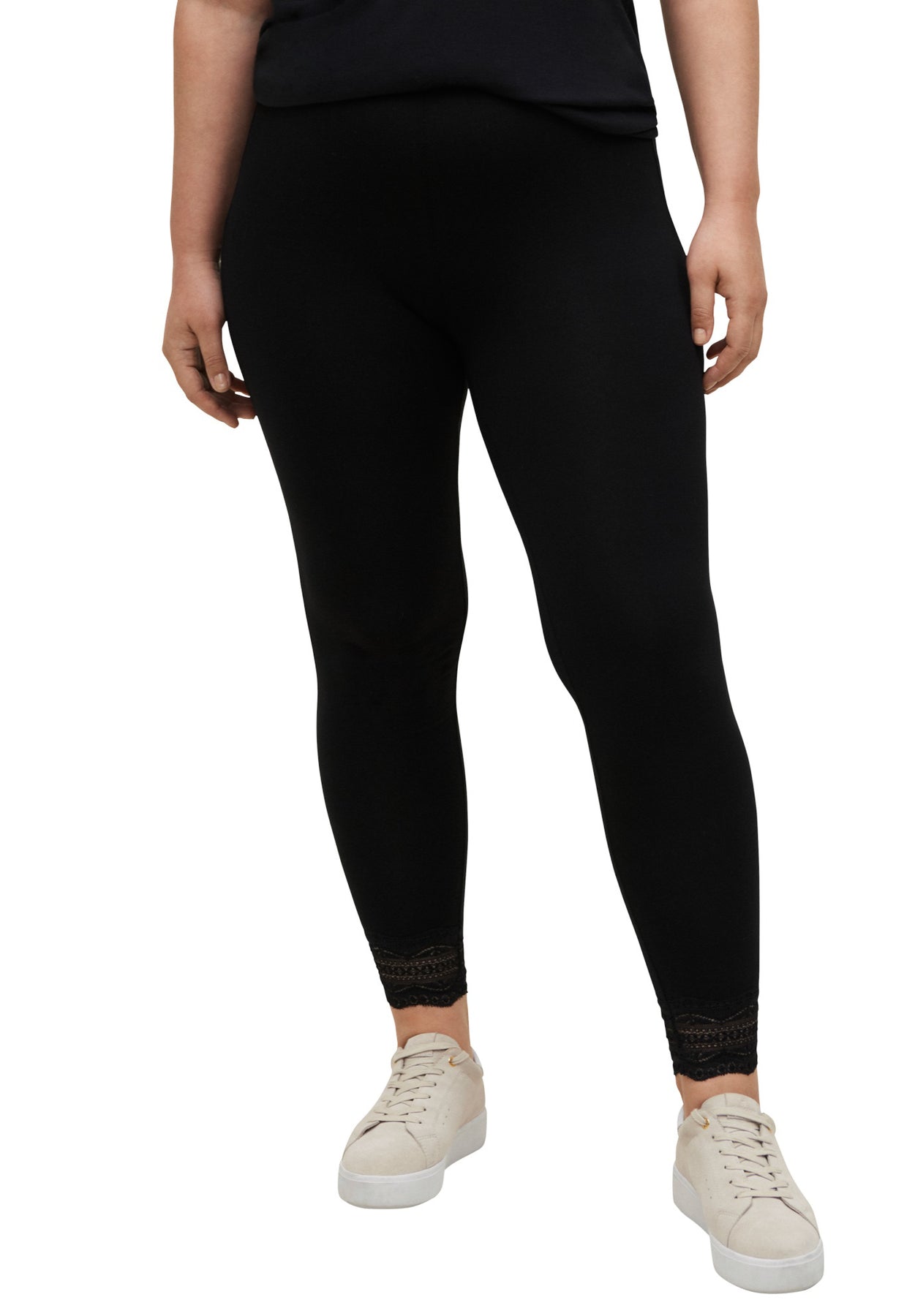 It’s amazing how a touch of scalloped lace can up the fashion game of sleek, stretchy cotton/spandex jersey leggings. Ultra-feminine, super comfortable and ready to be styled with flats or sneakers.
