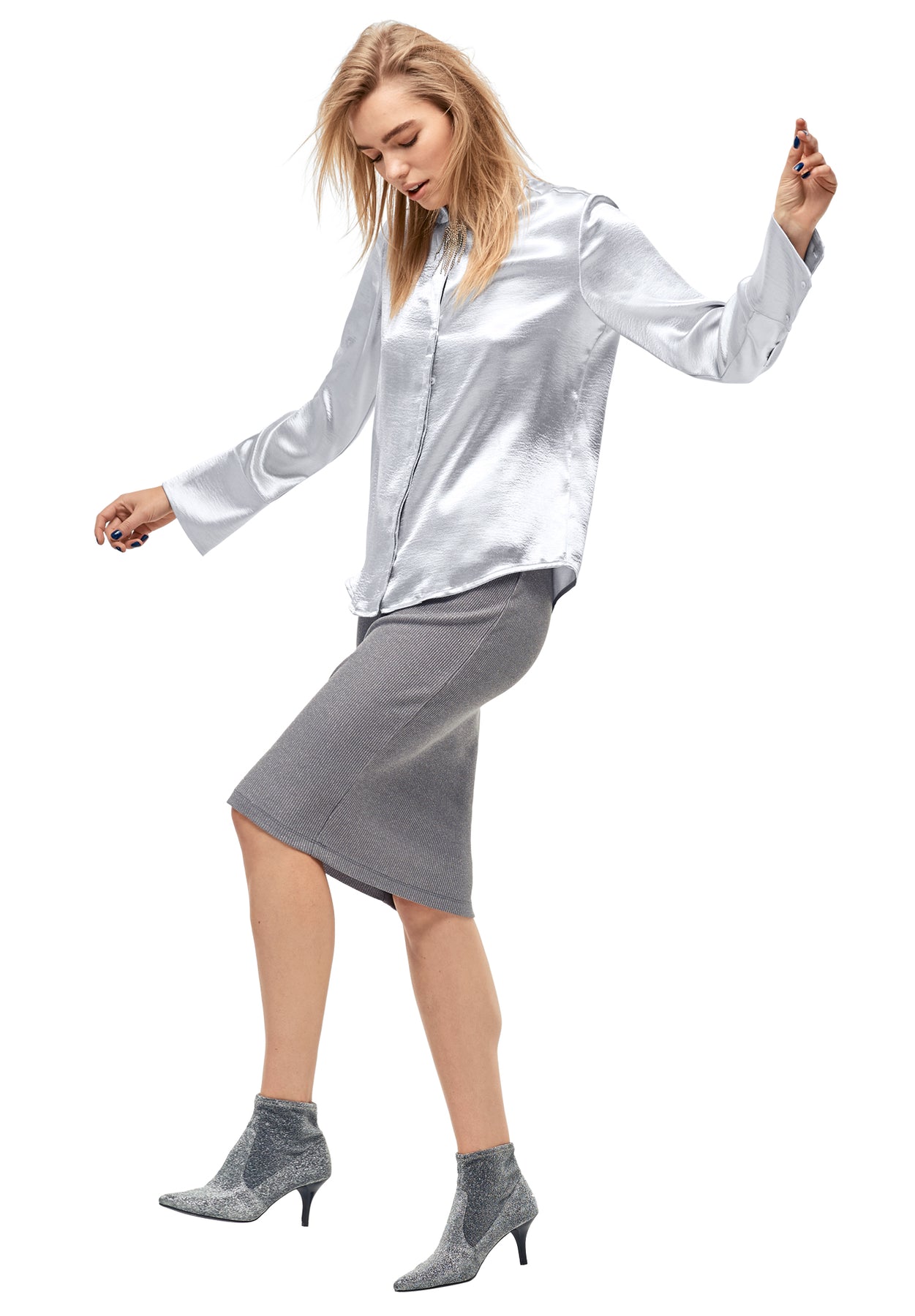 This lovely satin blouse will draw your attention with its high-shine look & casual vibe. Whether you decide to pair it with our metallic knit skirt for a night out or dress it down over denim or layered with a slouchy sweater — there's pretty much no wrong way to wear it.