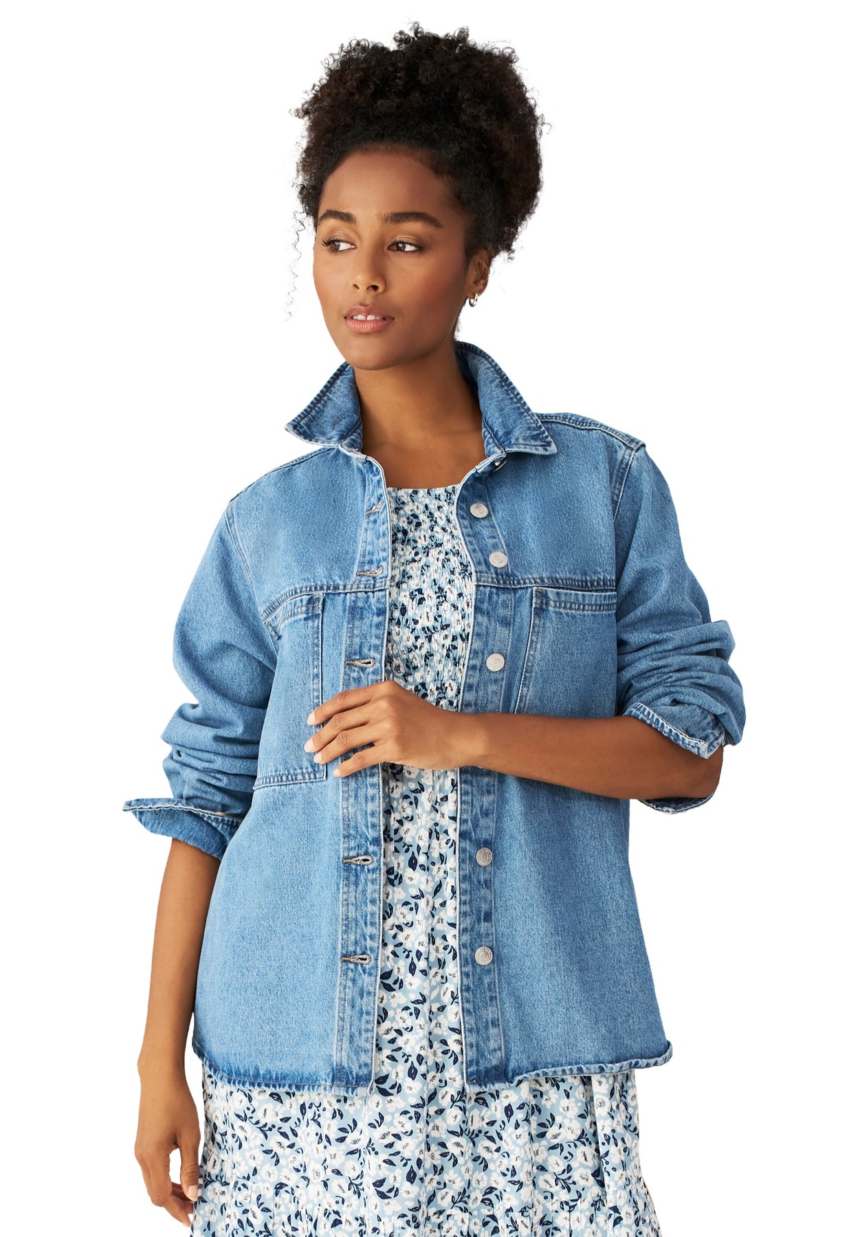 Meet your new favorite denim jacket— both trendy and classic! This 100% cotton denim jacket is essential for transitioning from winter to spring and summer to fall. Layer this timeless piece over any outfit.