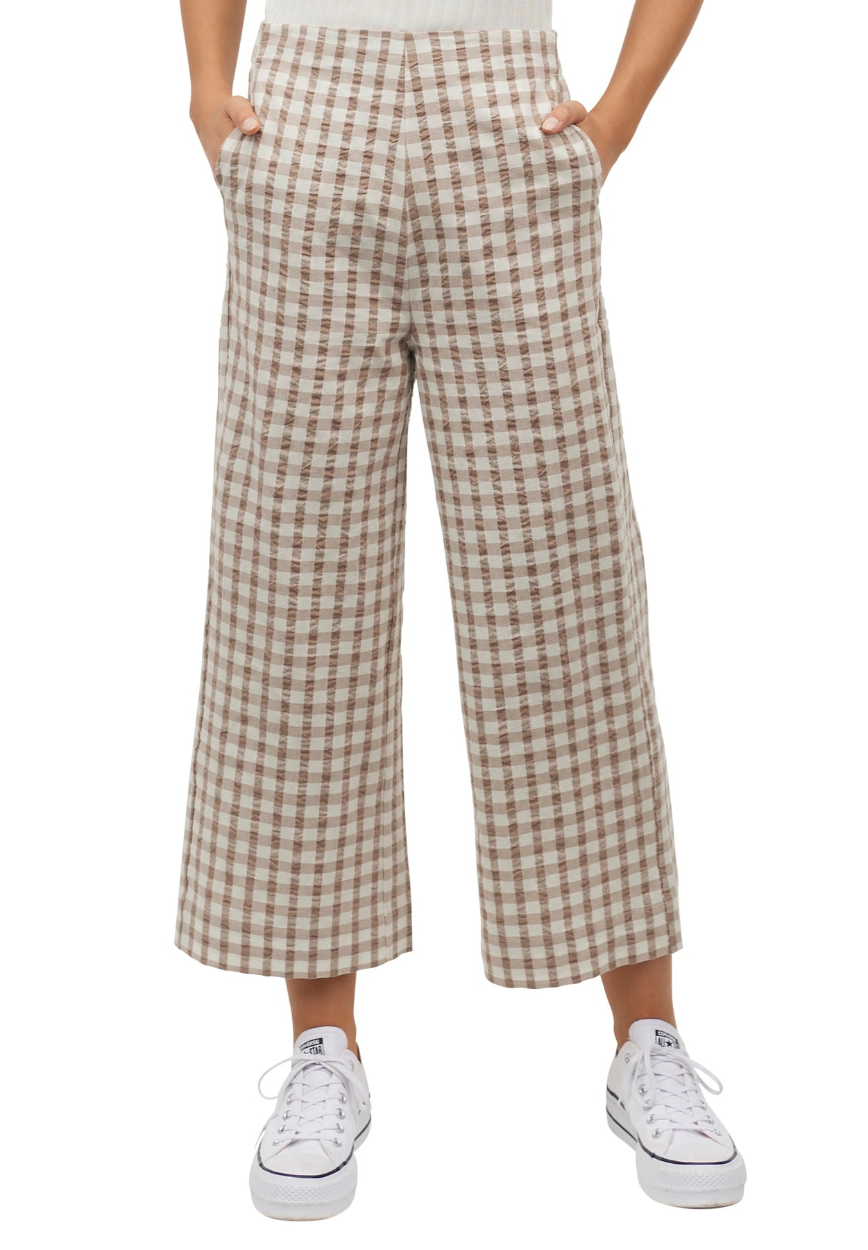 Nothing says summer like gingham. A timeless pattern in a modern silhouette, this is how you wear the pants this season! Pair it with our tie-front blouse & slides to finish your look.
