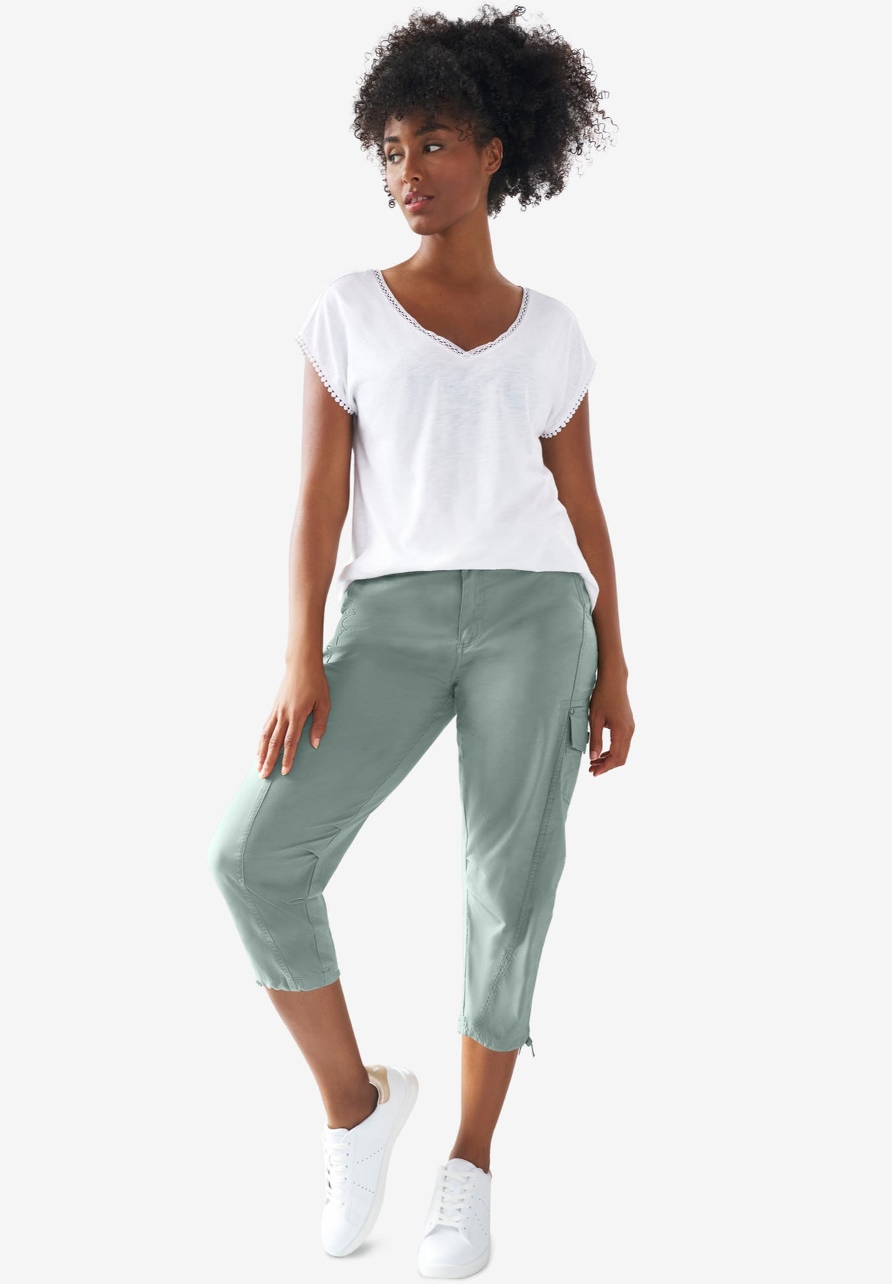 On trend and on point, these stretch cargo capris are crafted from our cotton. They have a comfortable fit with a flattering cropped cut and feminine side ties, perfect for a weekend-casual look. Pair them with your favorite sneakers and a classic tee.