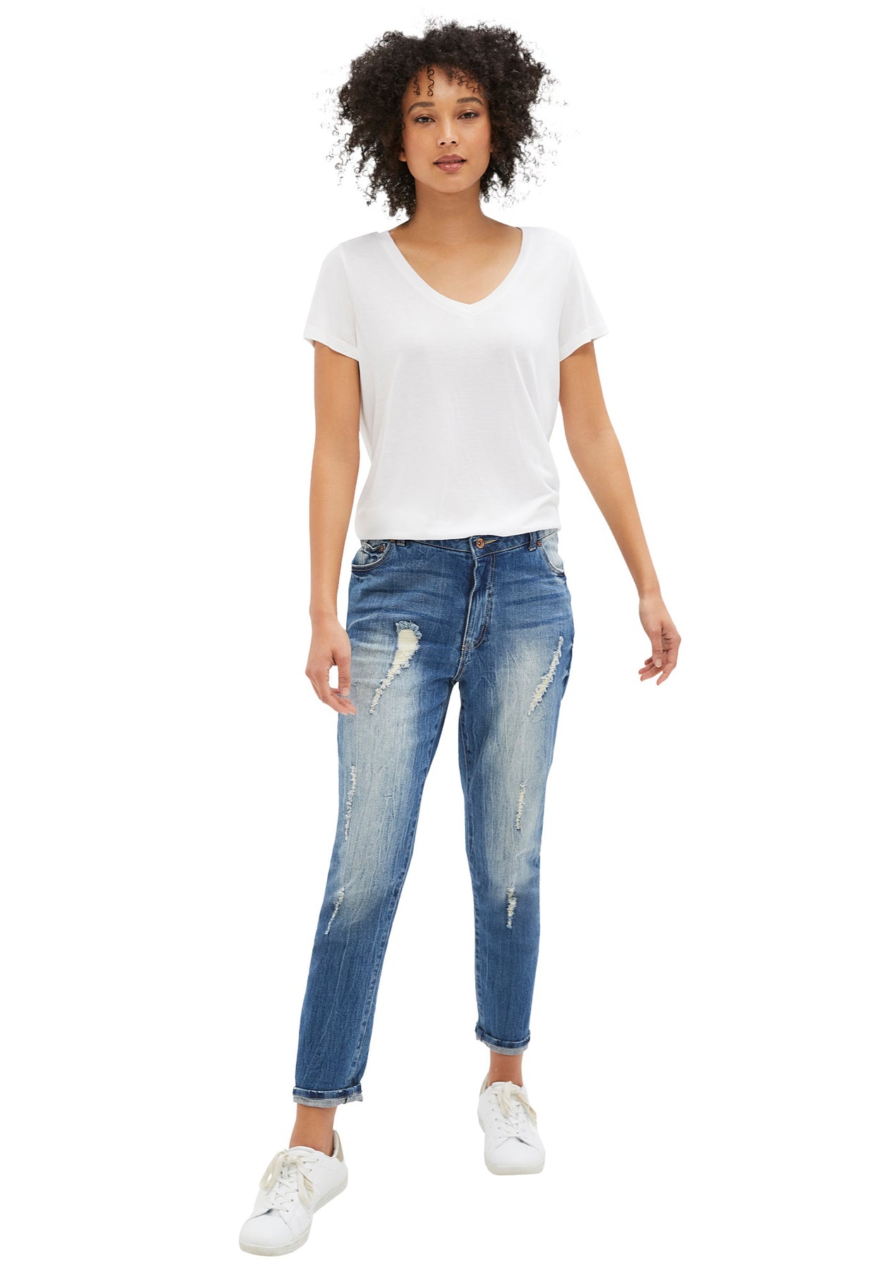 Our signature boyfriend jeans are so comfortable, they'll become your go-to denims. They have a flattering relaxed fit with a slightly tapered leg that you can wear rolled or unrolled.