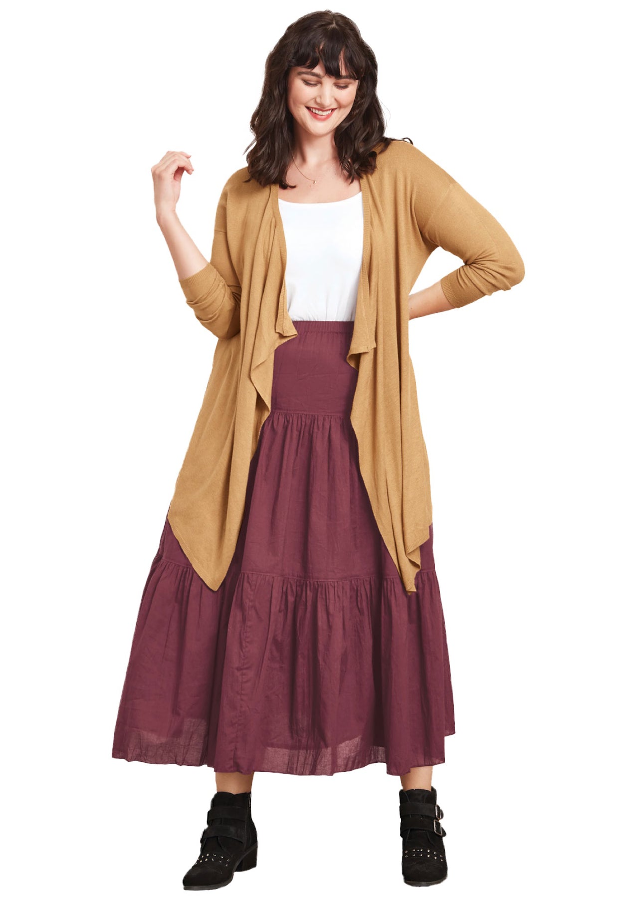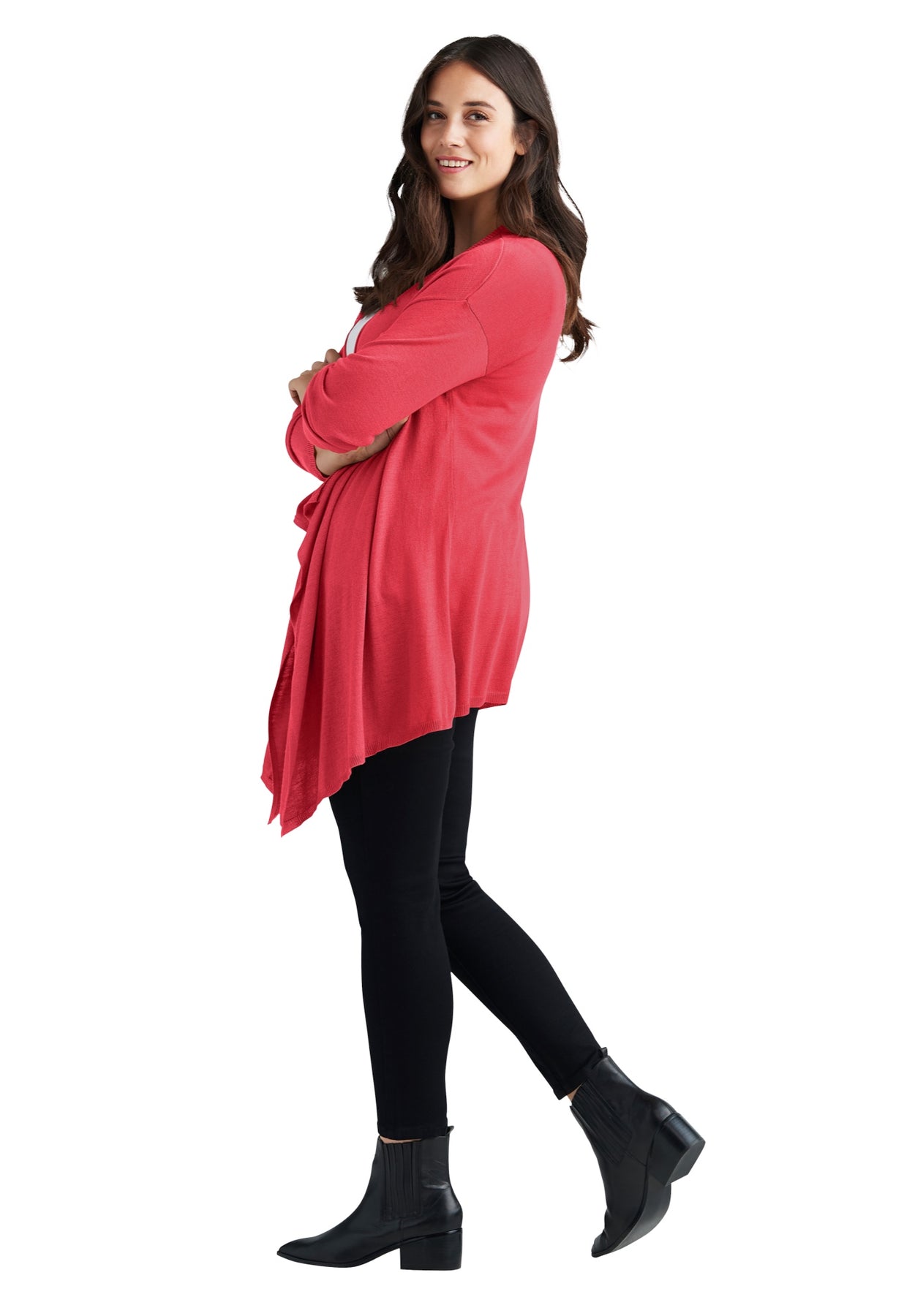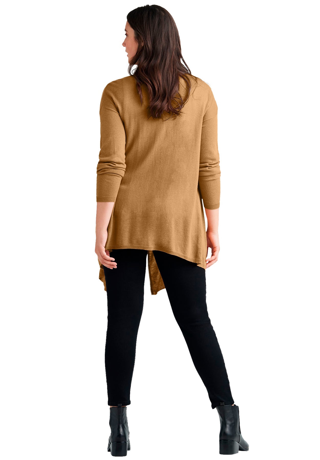 This lightweight cardigan has an open drape front, making it the perfect layer for in-between seasons or days in the office. Long sleeves with drop shoulders. Ribbed hem.