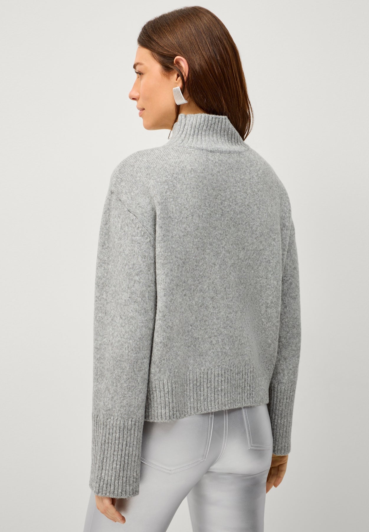 Add a polished touch to your wardrobe with this boxy pullover. It’s a must-have made from a classic wool blend, featuring a wide ribbed mock neck. Whether you style it with jeans, a skirt, dress it up or wear it casually—it's always a winner.